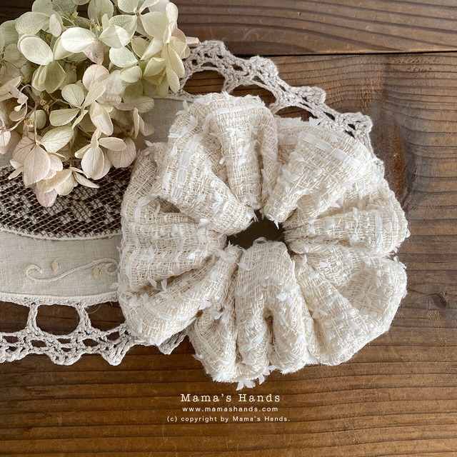 ⭐️5点売れました⭐️《ホワイト エレガンス》上品なツイード おしゃれ アイボリー フォーマル シュシュ ヘアゴム