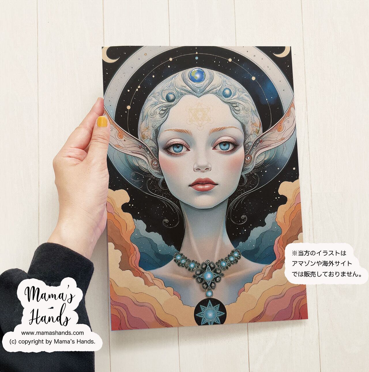 A4 ポスター プレアデス 星人 五次元 女性 レムリア 宇宙 メタトロン 神聖幾何学 開運 イラスト アート