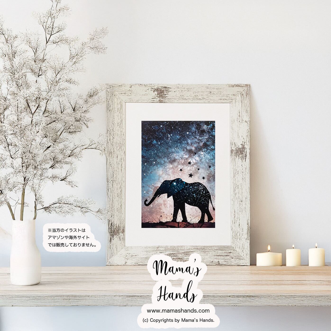 《夜空とゾウさん》☘️ A4 ポスター 可愛い 夢の中の星空散歩 イラスト アートです♪