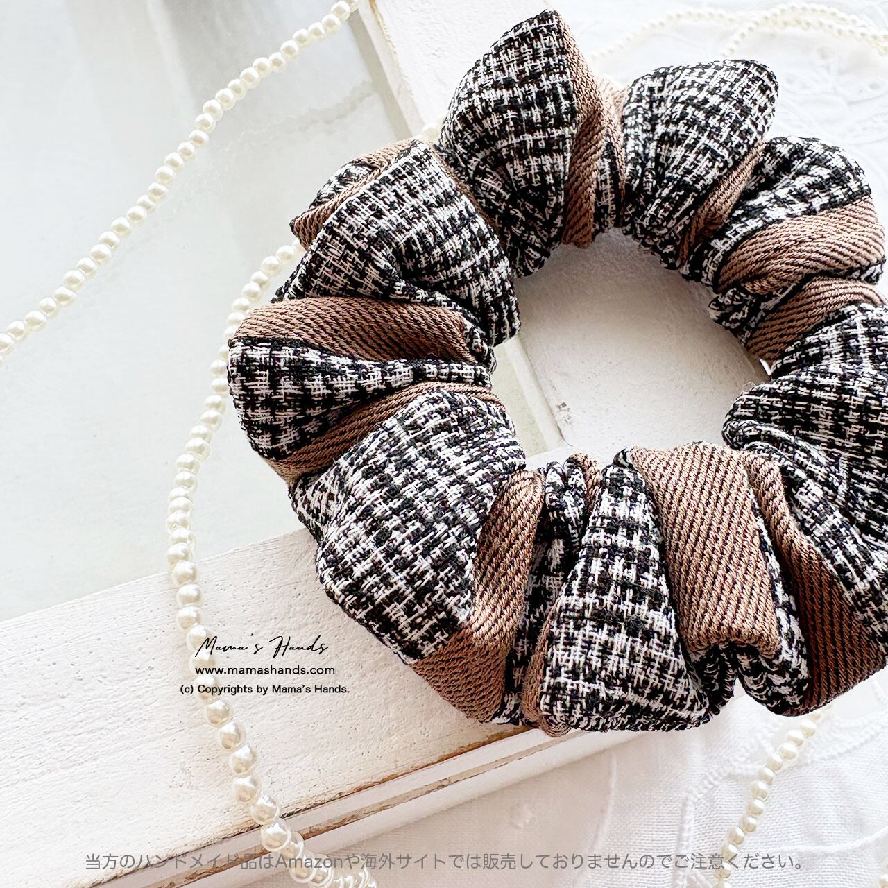 ⭐️《おしゃれな大人に》イタリア製 高級感漂う グレンチェック 茶系 シュシュ ヘアゴムです♪