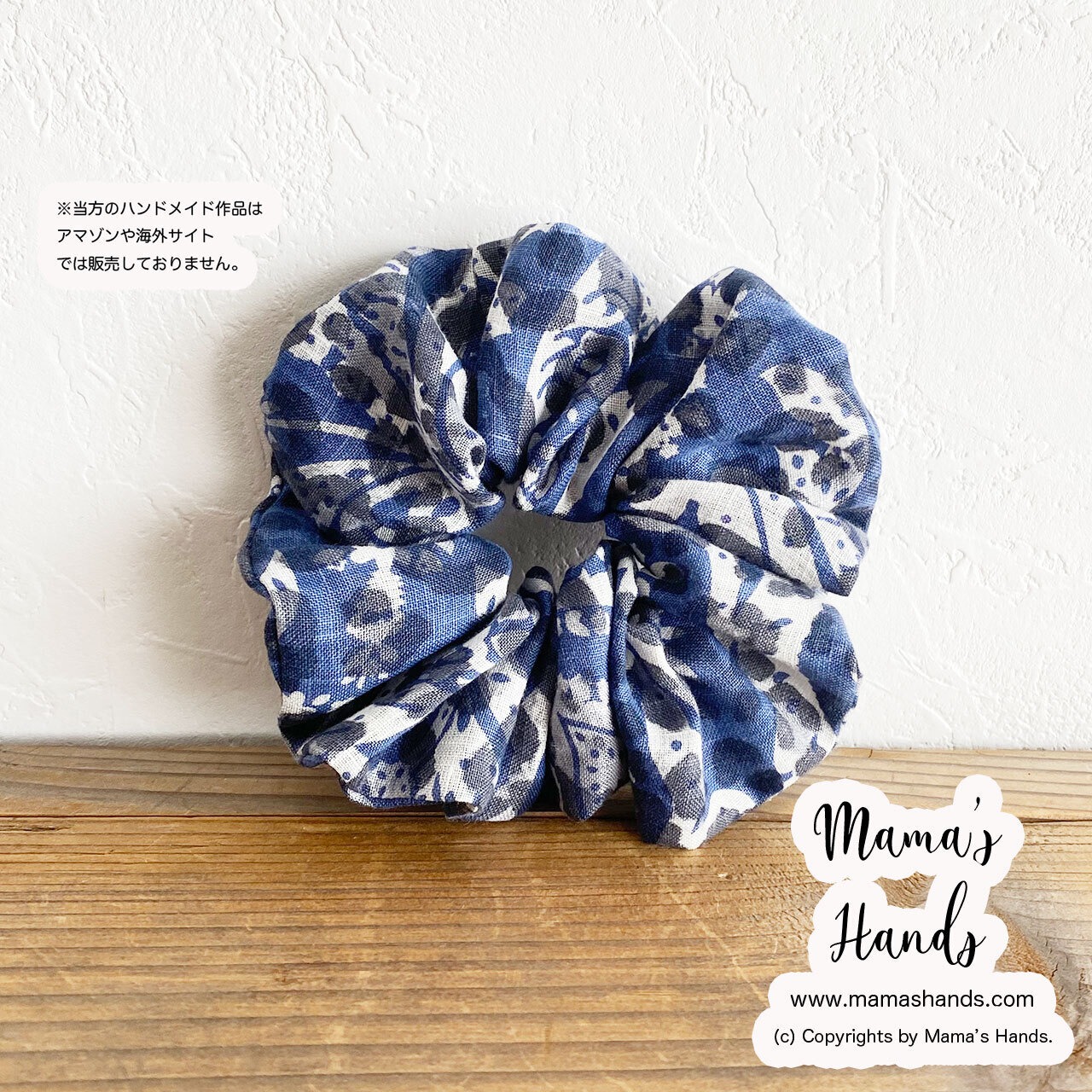 ⭐️3点売れました⭐️《イタリア製 リネン》 おしゃれな ペイズリー 青 x グレー ナチュラル 花柄 シュシュ ヘアゴム