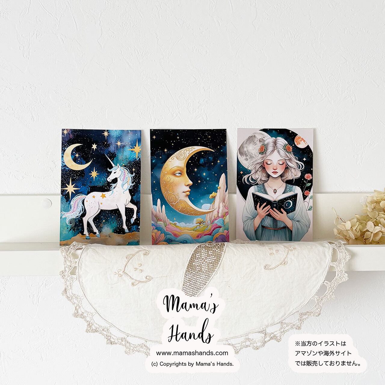 《タロットのような幻想世界》ムーンフェイス/ ユニコーン / 女性 ムーン オラクル ポストカード 3枚 ハガキ セット