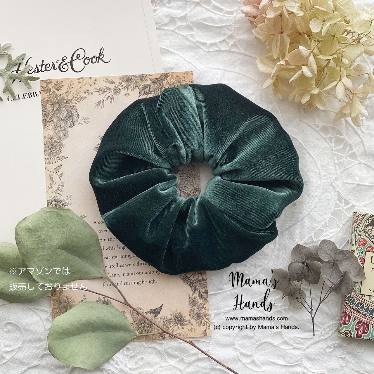 ⭐️5点売れました⭐️《緑の魔法》おしゃれな モスグリーン ベルベット 別珍 シンプル シュシュ ヘアゴム