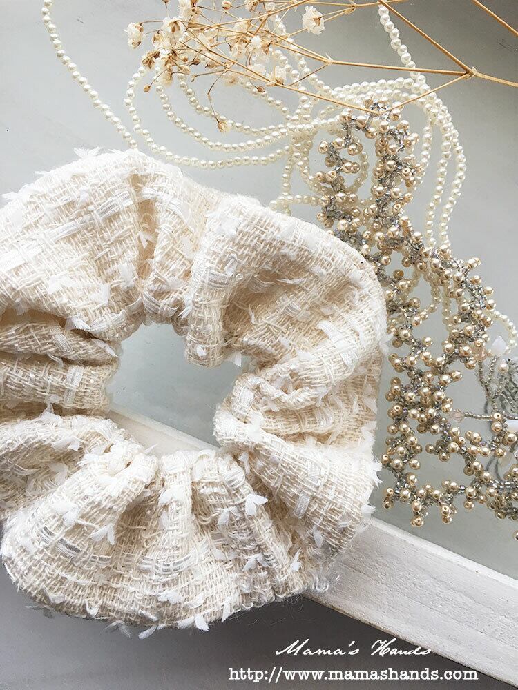 ⭐️5点売れました⭐️《ホワイト エレガンス》上品なツイード おしゃれ アイボリー フォーマル シュシュ ヘアゴム