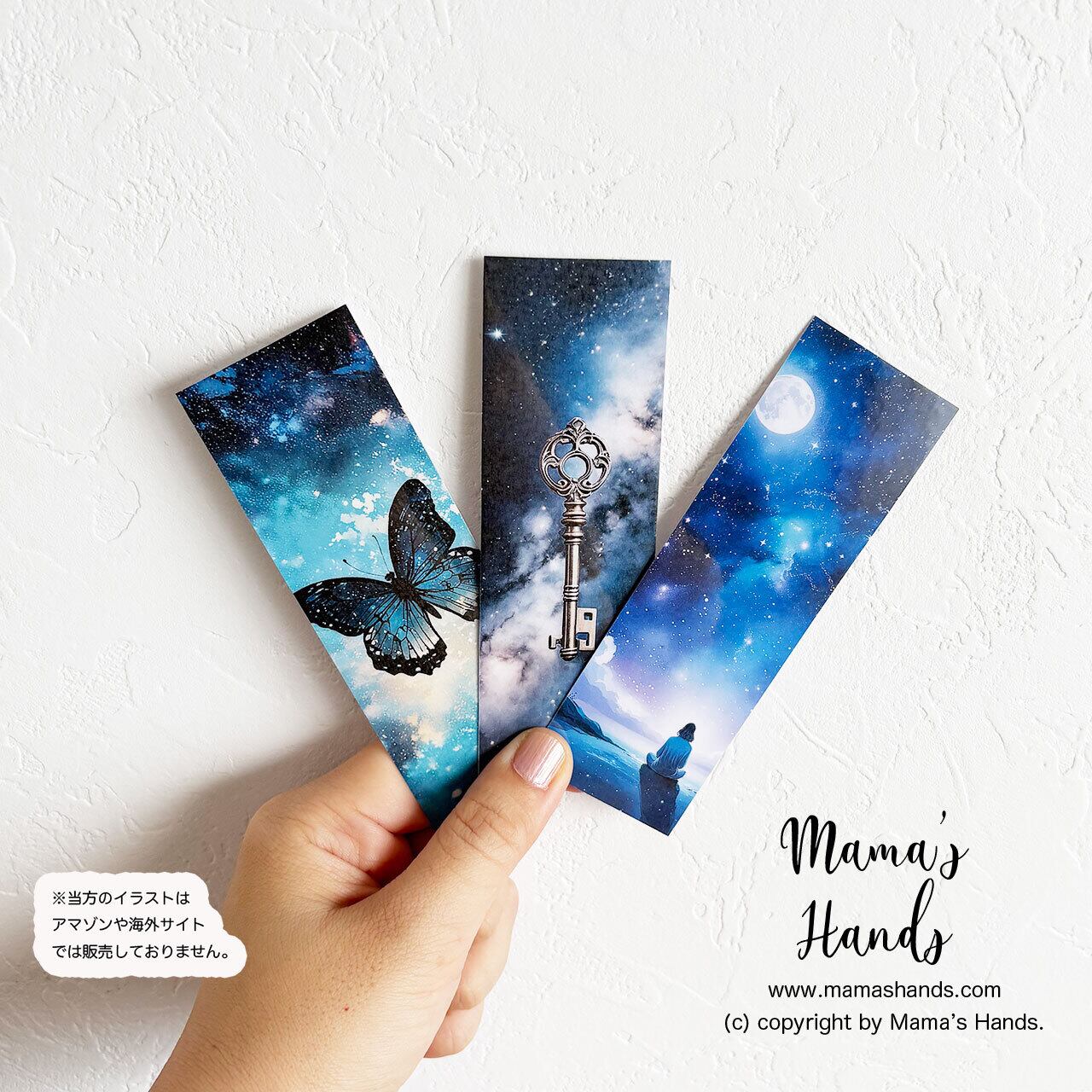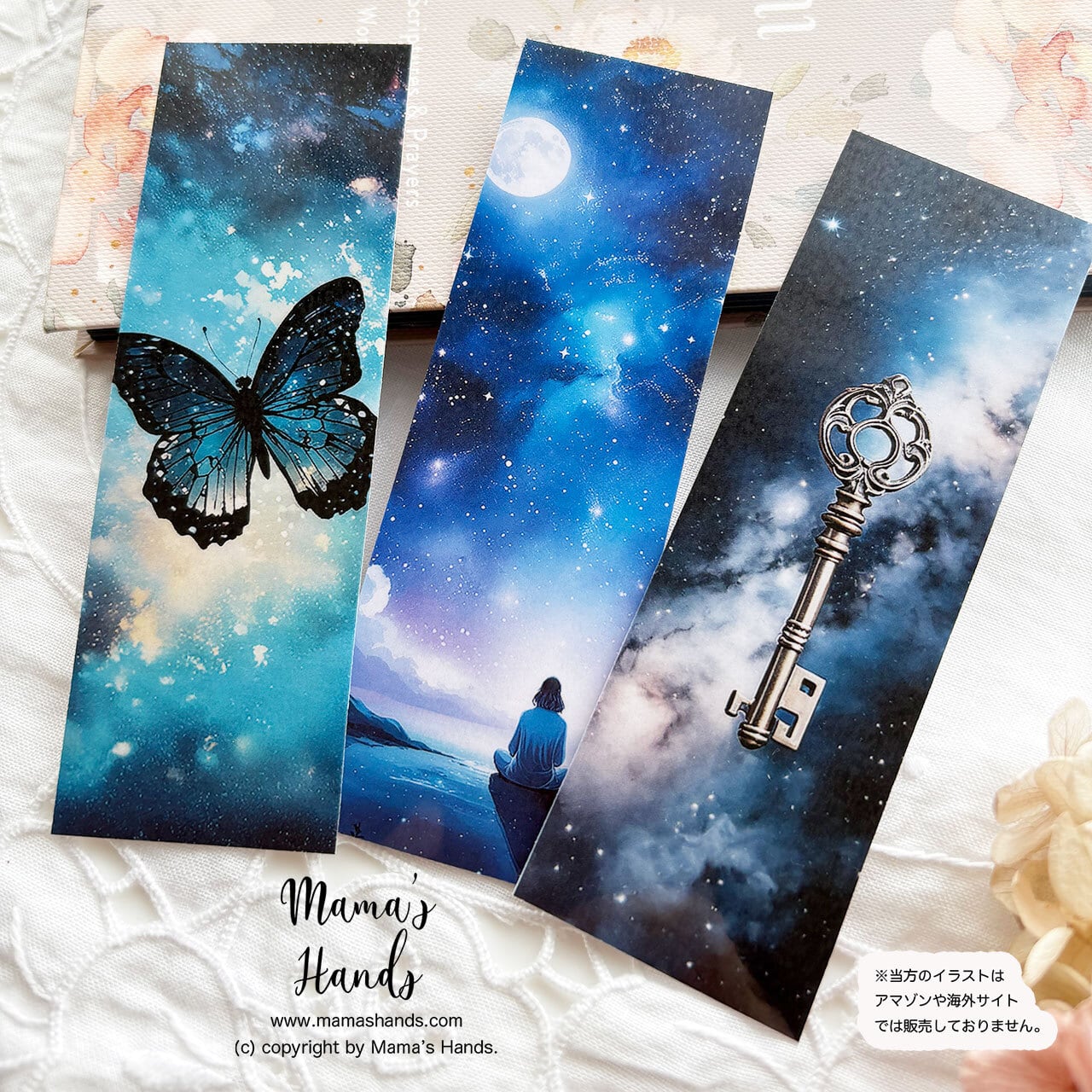 《しおり 3枚》☘️静かな夜空を感じる 癒しのイラスト アート 読書 星空 蝶々 瞑想 プラスチック製です♪