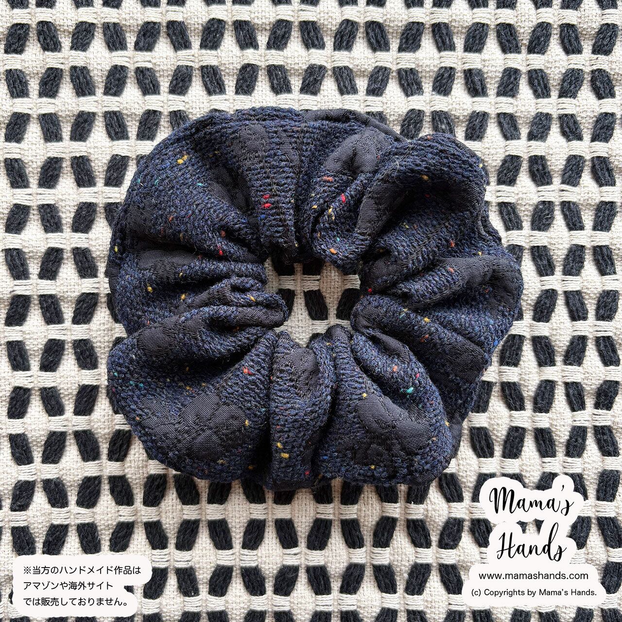 ⭐️3点売れました⭐️《イギリス製 フローラル》おしゃれな 上品 ネイビー 花柄 ジャガード織 ボリューム シュシュ ヘアゴム