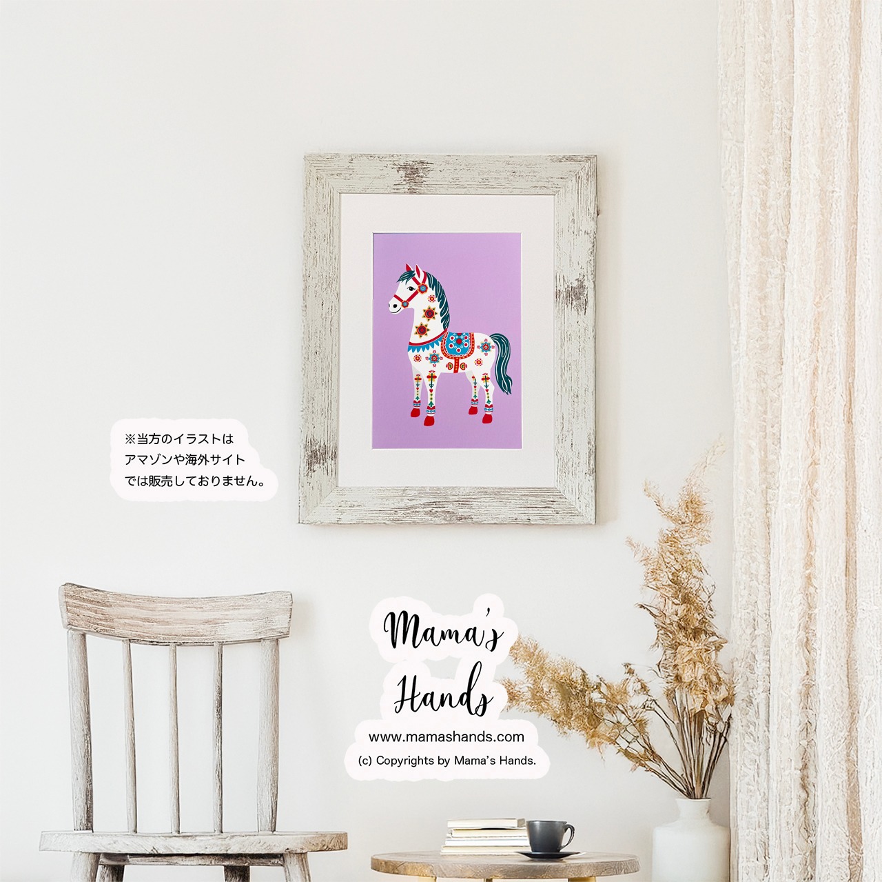 《幸せを運ぶ馬》☘️A4 ポスター 2026 午年 ダーラナホース 北欧 ピンク イラスト アートです♪