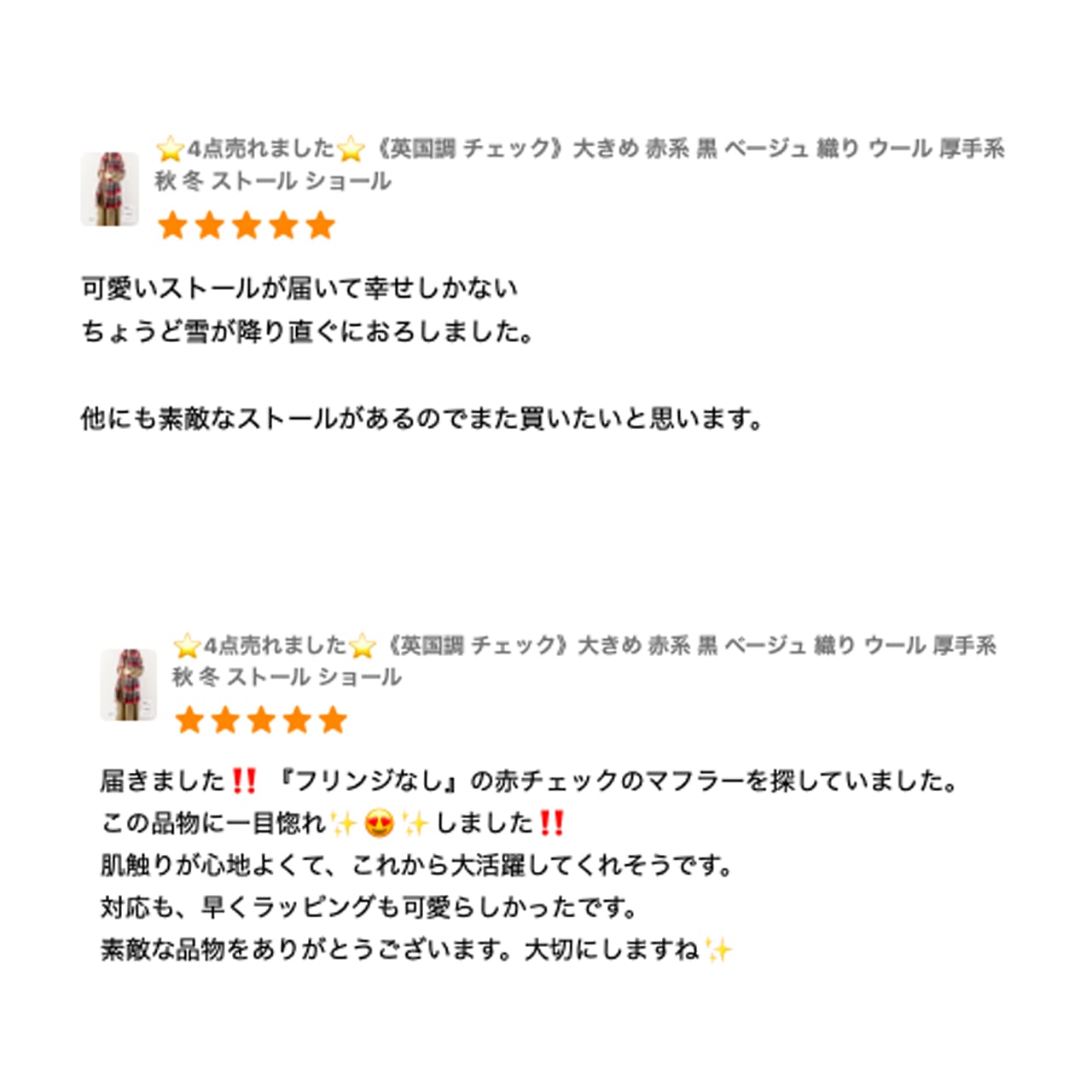 ⭐️4点売れました⭐️《英国調 チェック》大きめ 赤系 黒 ベージュ 織り ウール 厚手系 秋 冬 ストール ショール