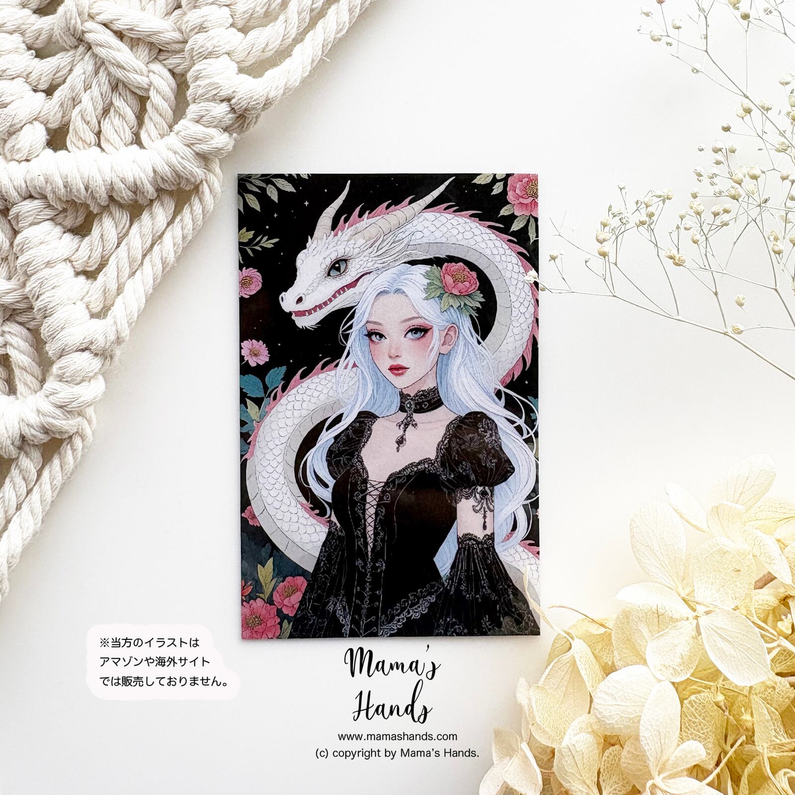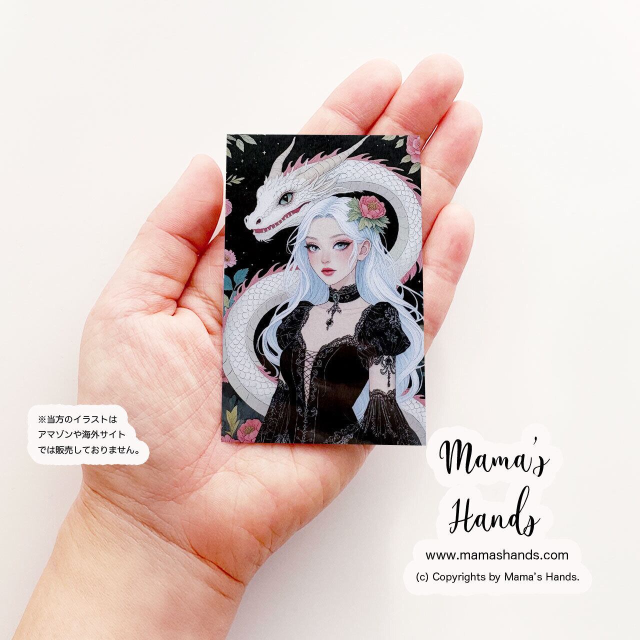 《おしゃれな ゴシック女子と白龍》☘️可愛い 龍 龍神 お財布 スマホに入る イラスト アート プラスチック カード です♪ ::::2点売れました::::