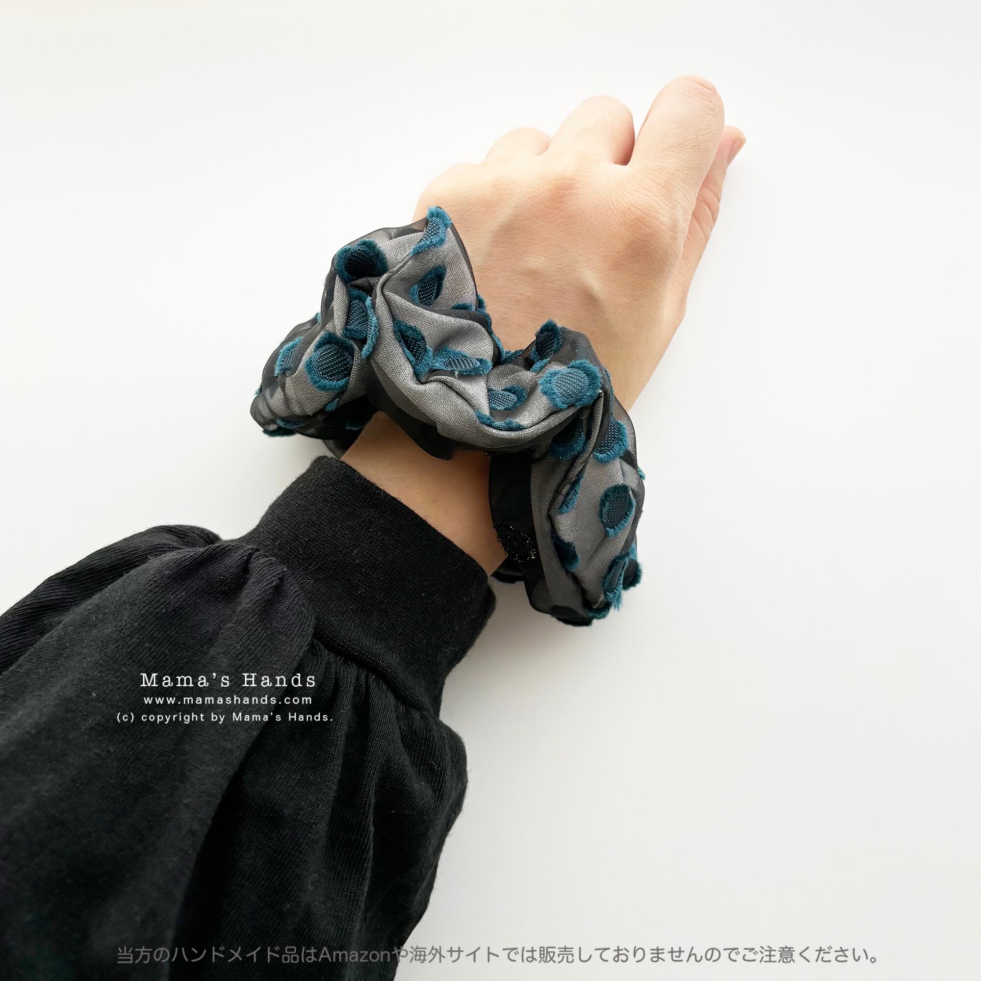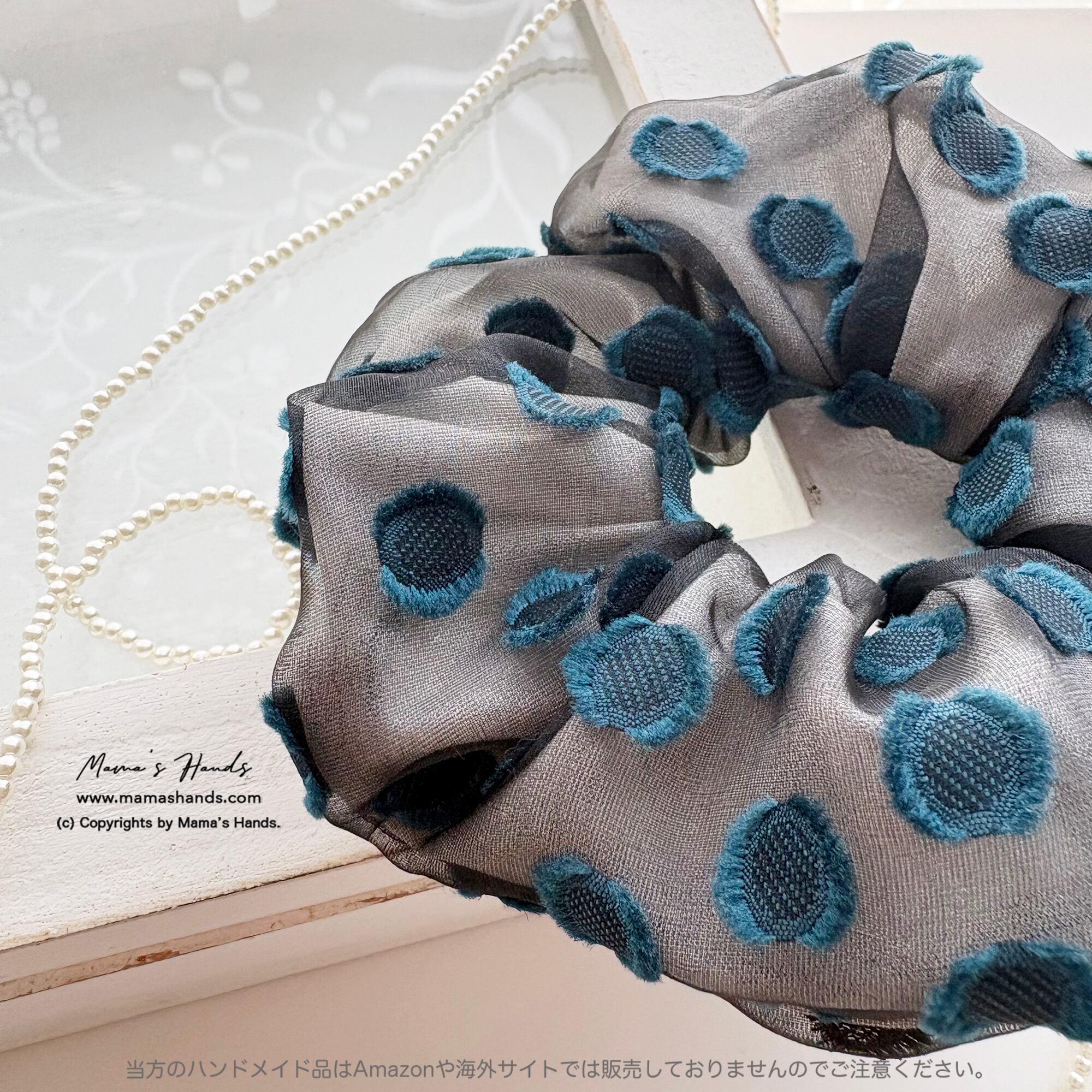 《ふんわり夜空 星屑のドット》おしゃれな ブルー 水玉 ブラック 黒 ヘアゴム シュシュ
