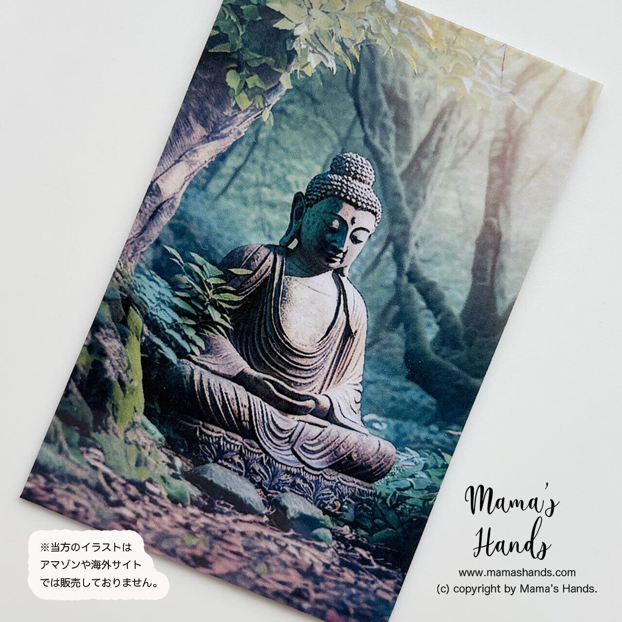《静かな森と釈迦》☘️美しい ブッダ 仏像 ヨガ 瞑想 和風 お財布 スマホに入る イラスト アート プラスチック製 カード です♪