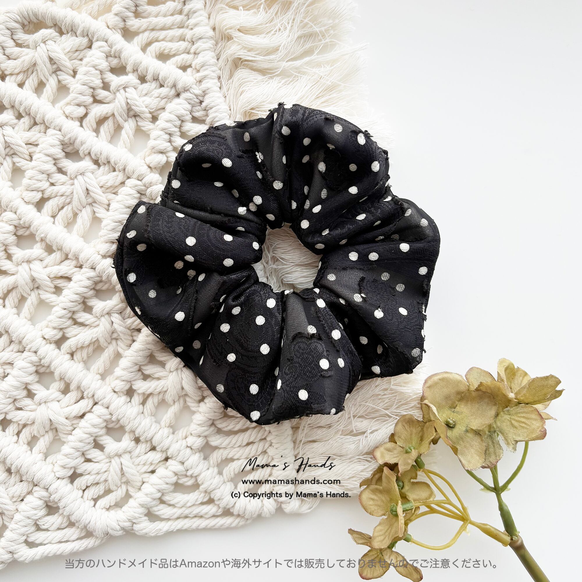 ⭐️《大人のペイズリー ジャガード織 》おしゃれな ふんわり 白 ドット 水玉 花柄 ブラック 黒 ヘアゴム シュシュです♪