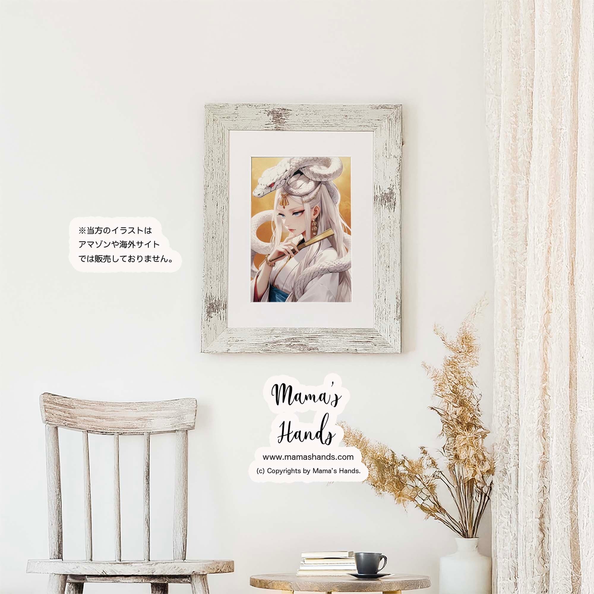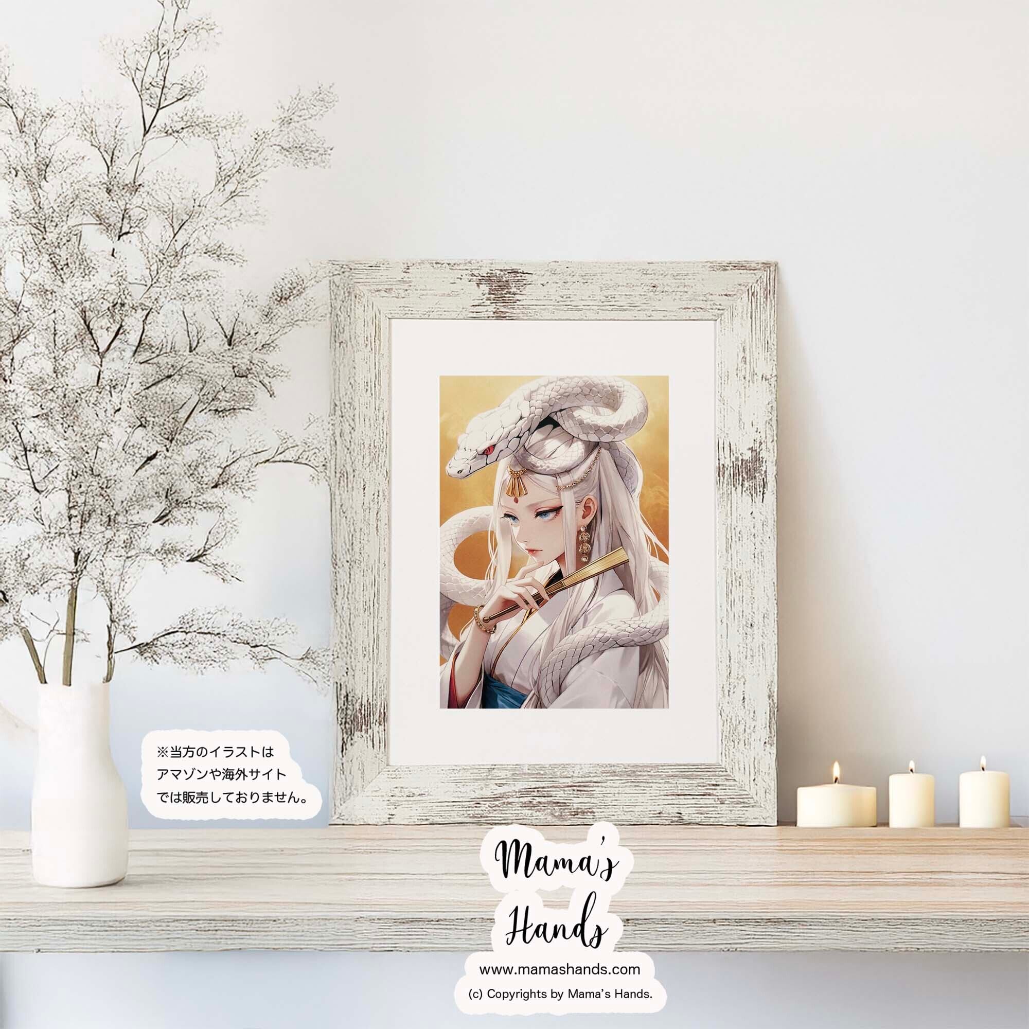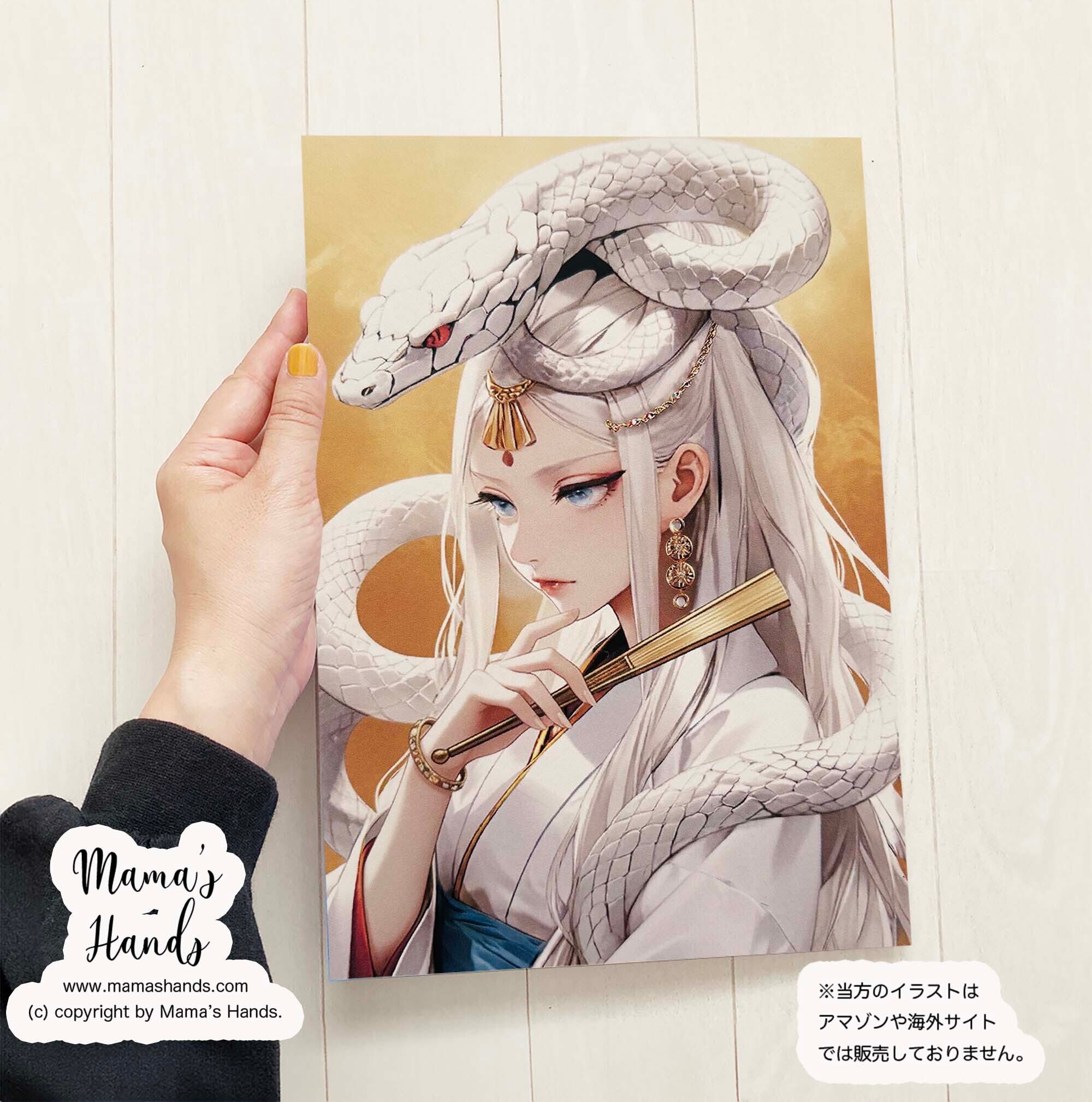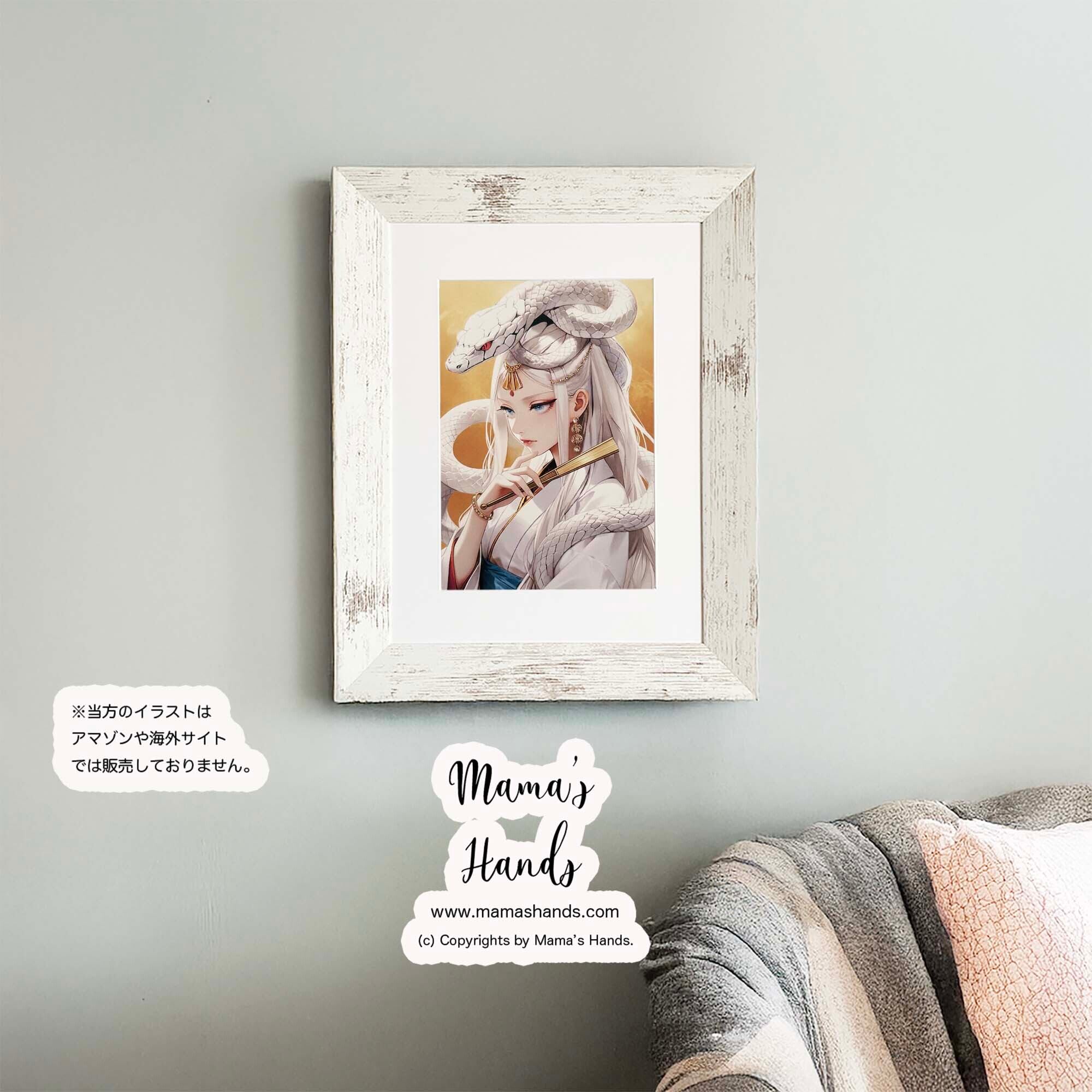 《白蛇を従える 弁財天》☘️A4 ポスター 黄金の美 水の女神 開運 和モダン イラスト アート
