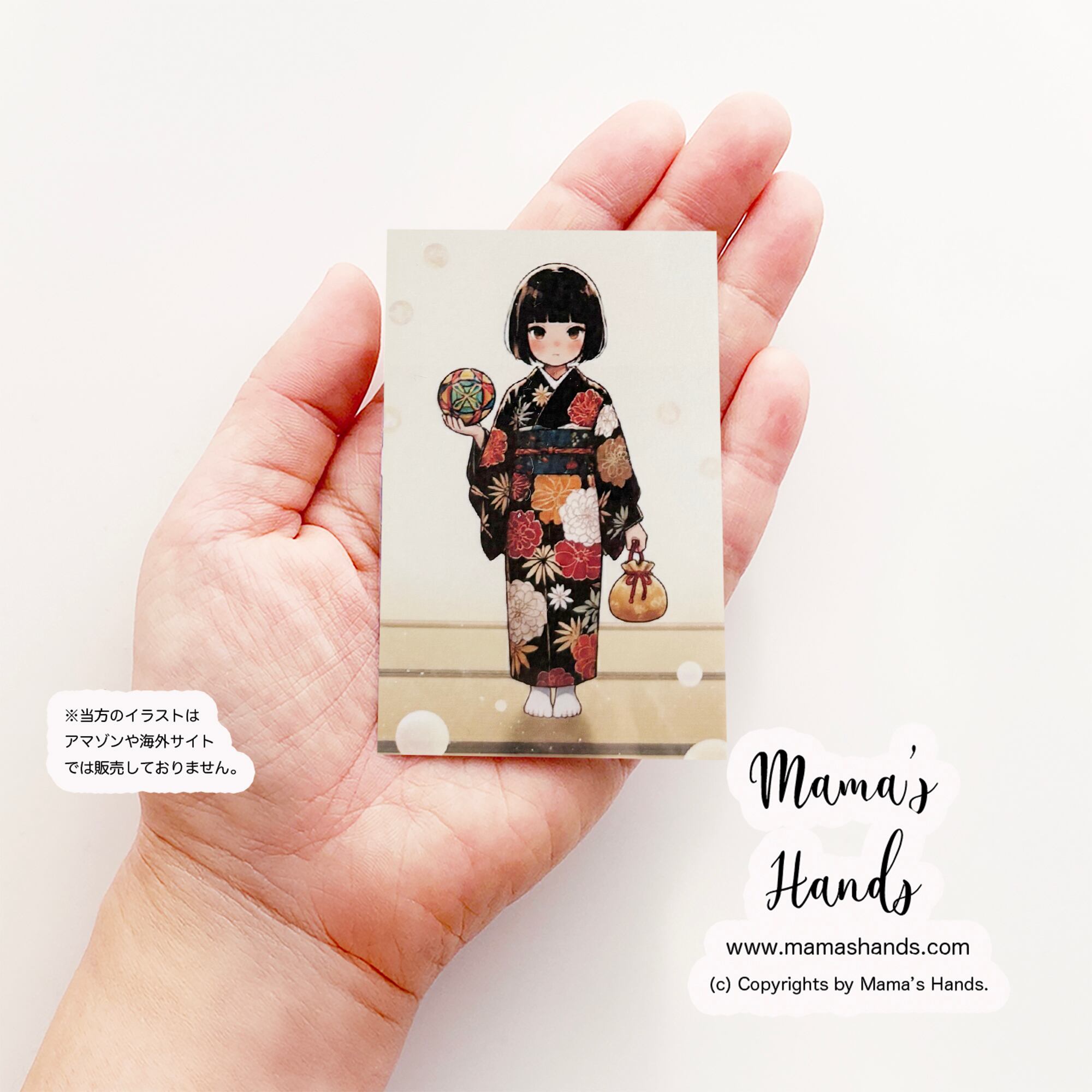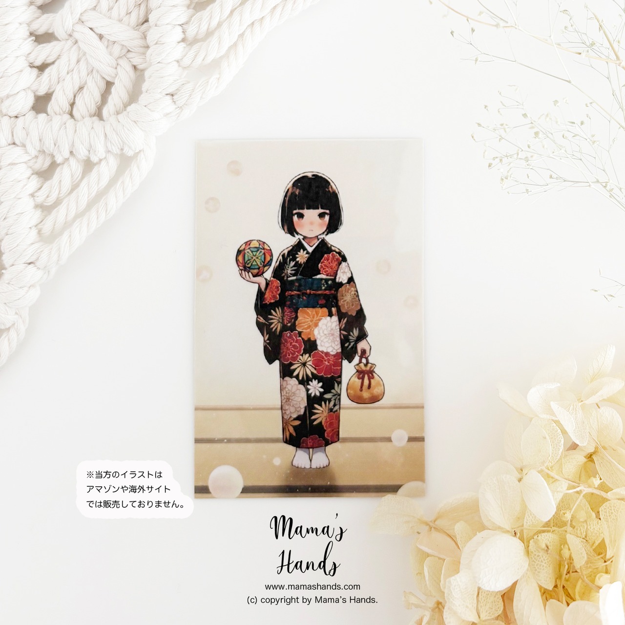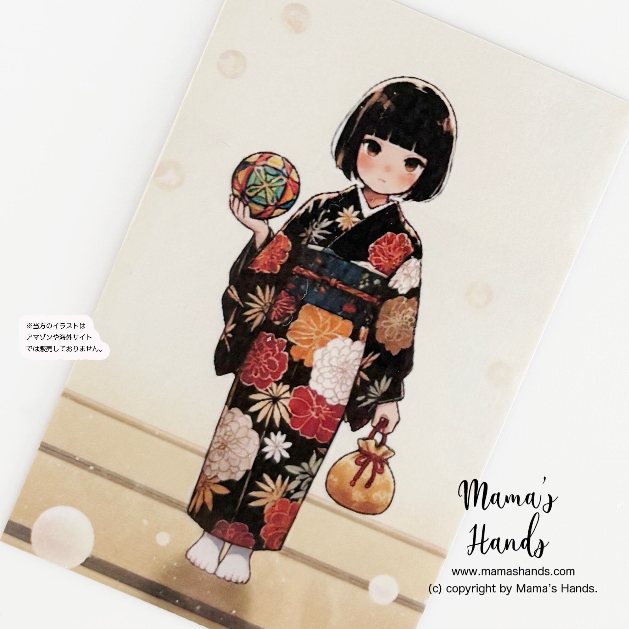 《座敷童子》☘️手鞠 巾着袋 着物 お財布やスマホに入る 神秘的 スピリチュアル 開運 お守り イラスト アート カード プラスチック製