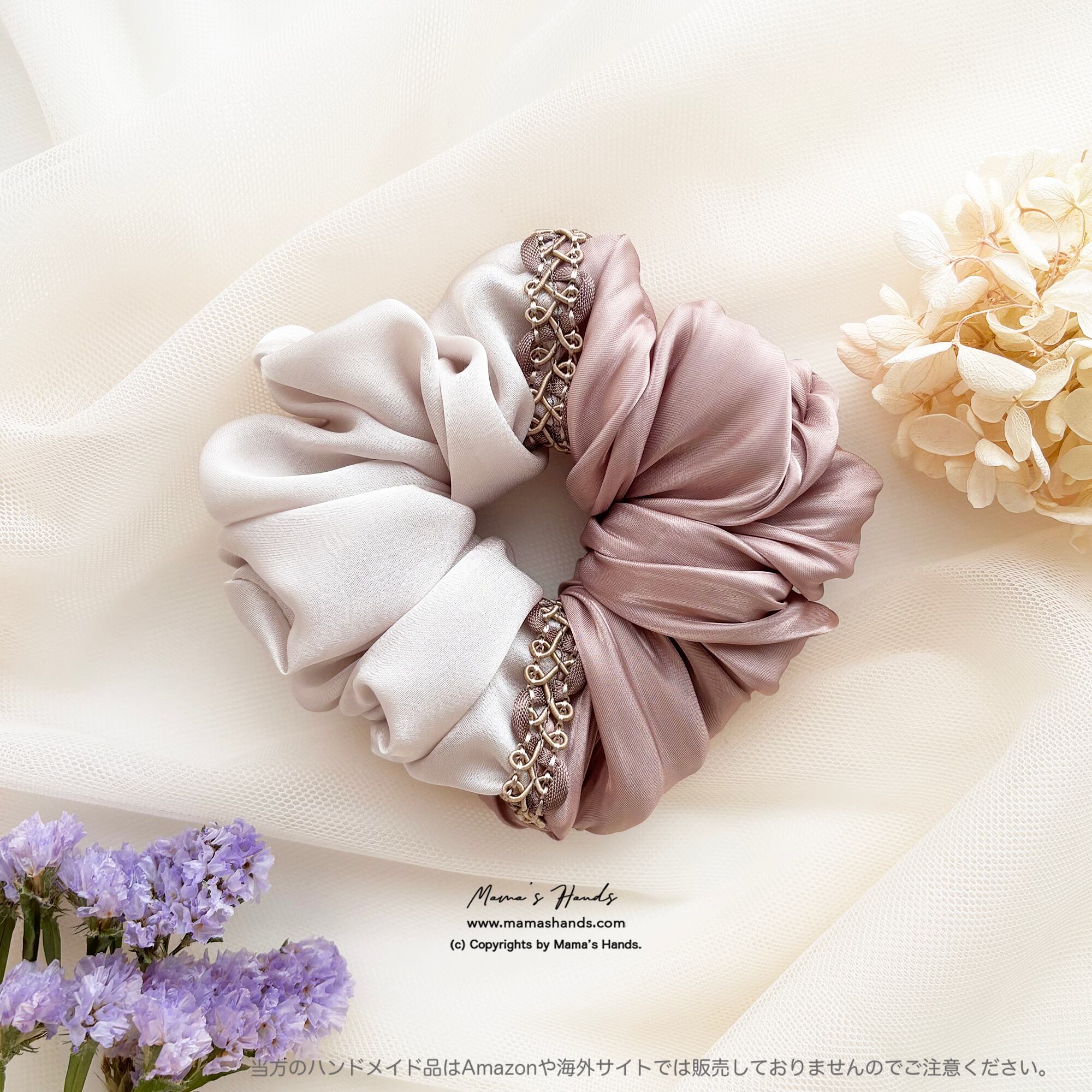 (*髪の毛の量で個人差がありますので、最初に通常のゴムで結んだ後に、シュシュをする方法もあります)