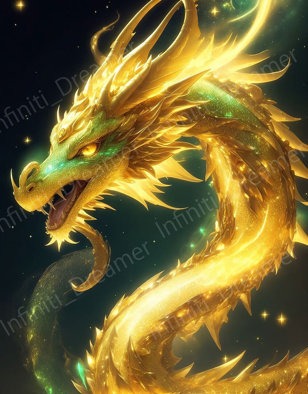 輝く 金龍 龍神 強運 スピリチュアル 開運 イラスト アート(デジタルコンテンツ ダウンロード販売)です♪