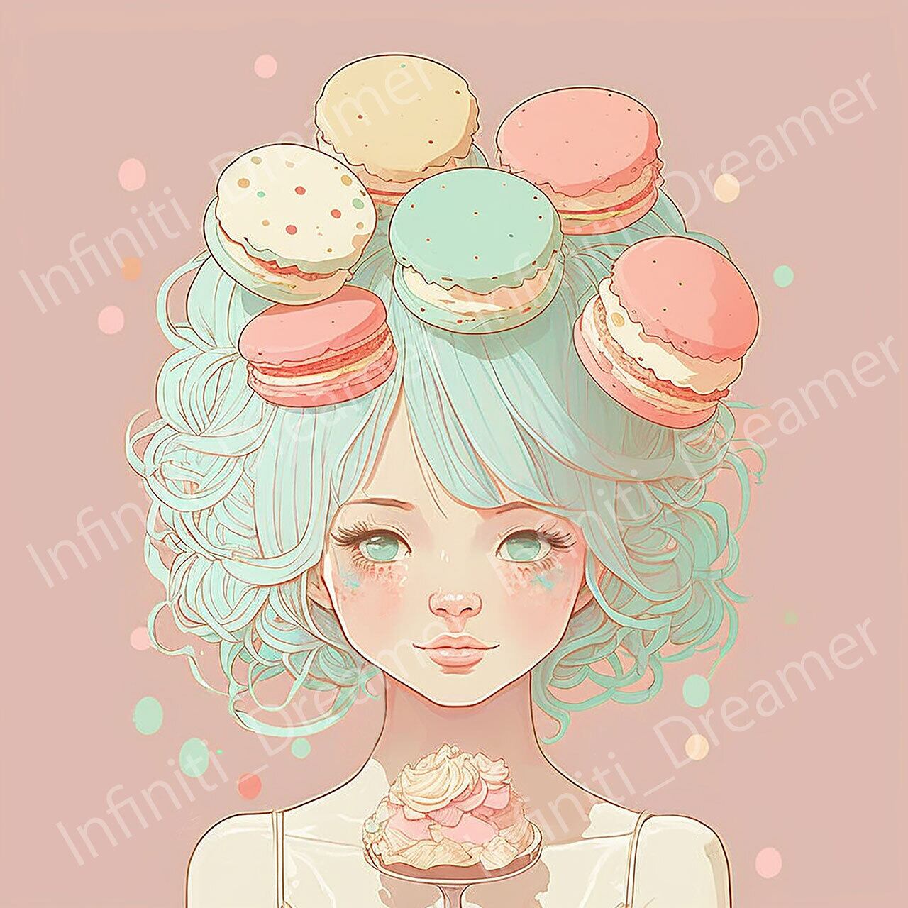 マカロンと女の子の パステルカラー イラスト アート (デジタルコンテンツ ダウンロード販売)
