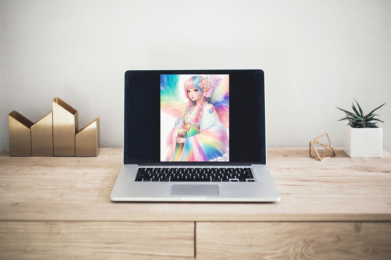 虹色の着物を着る天使の女性のイラスト アート (デジタルコンテンツ ダウンロード販売)