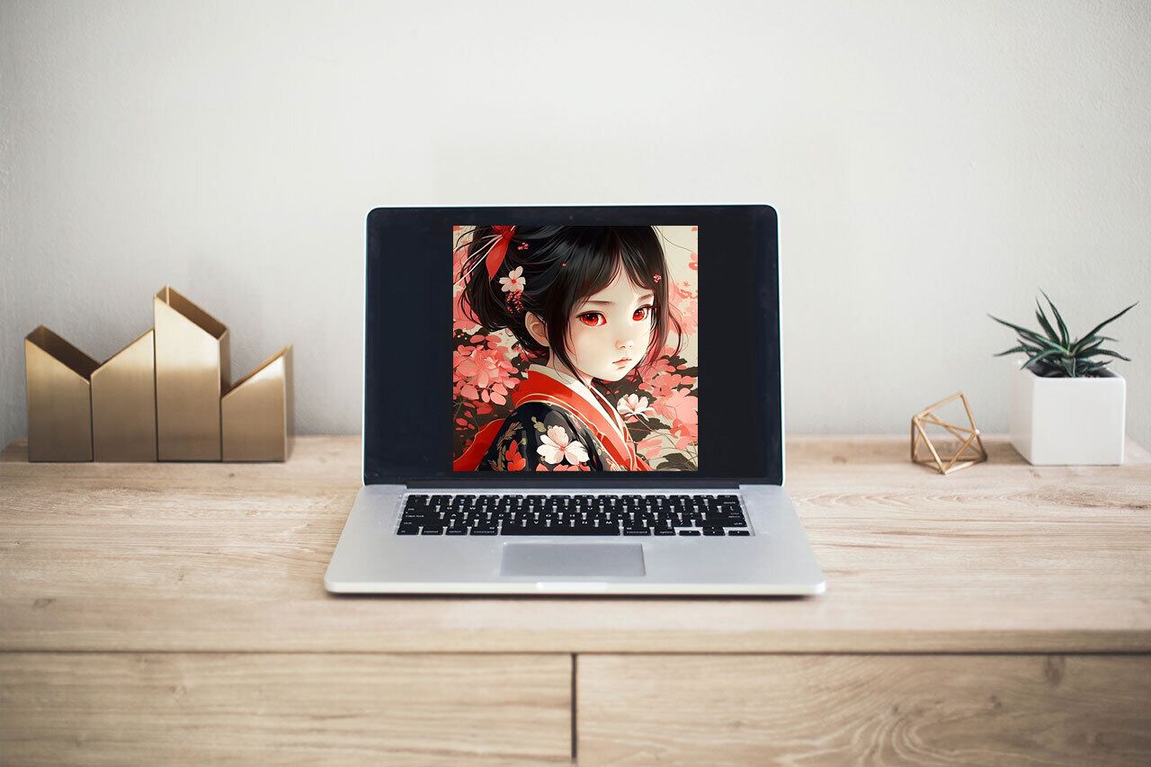 赤い着物を着た子供 イラスト アート (デジタルコンテンツ ダウンロード販売)