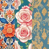 3枚 ビンテージスタイルの花柄 イラスト アート (デジタルコンテンツ ダウンロード販売)
