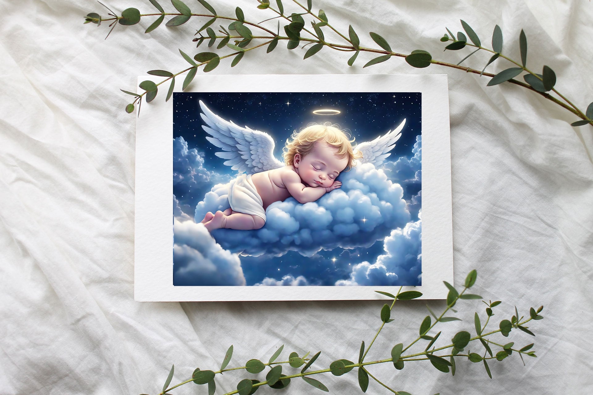 雲の上で眠る赤ちゃん天使 のイラストアート(デジタルコンテンツ ダウンロード販売)