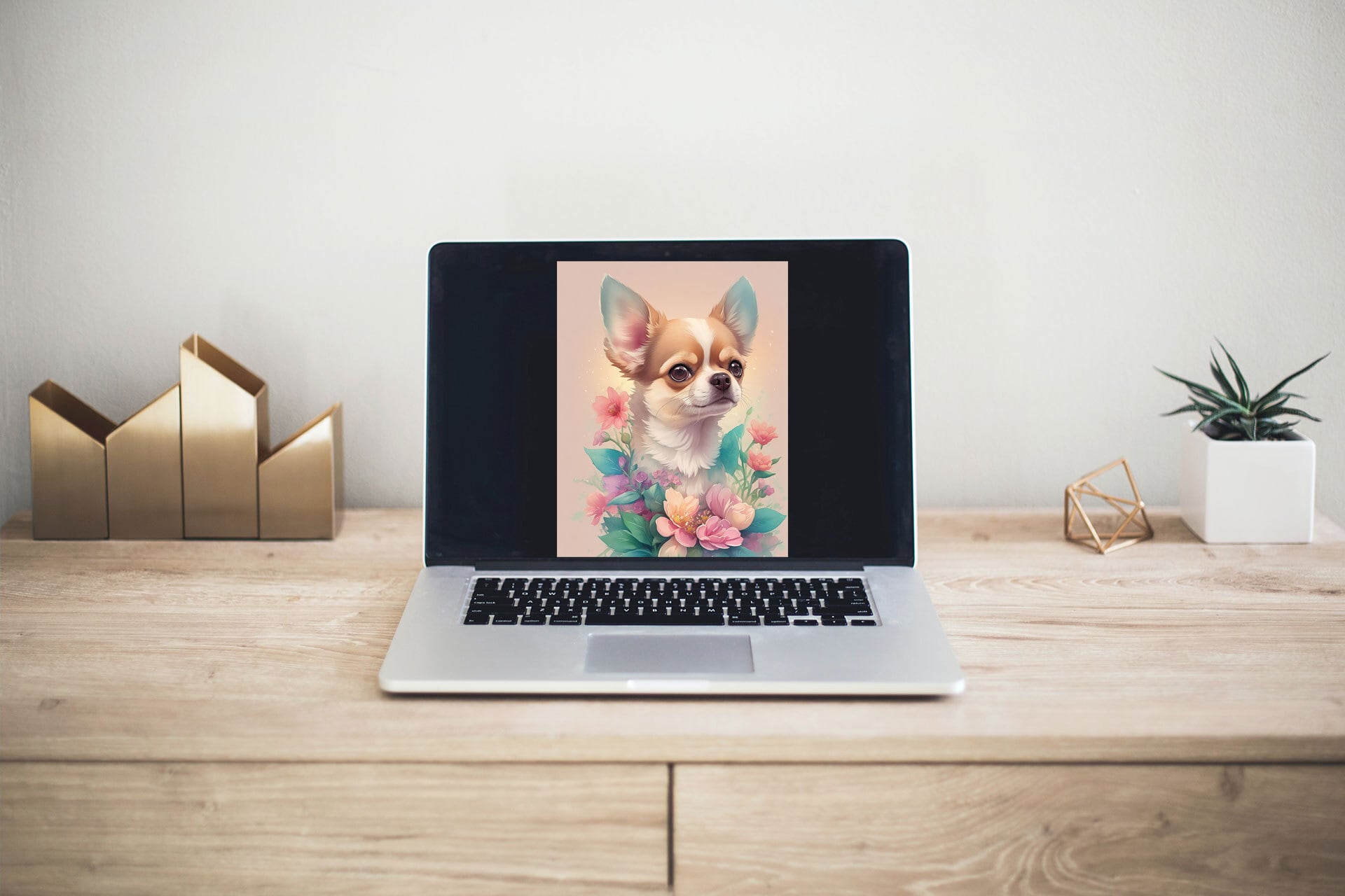 可愛い チワワ と お花 の 水彩画 アート(デジタルコンテンツ ダウンロード販売)