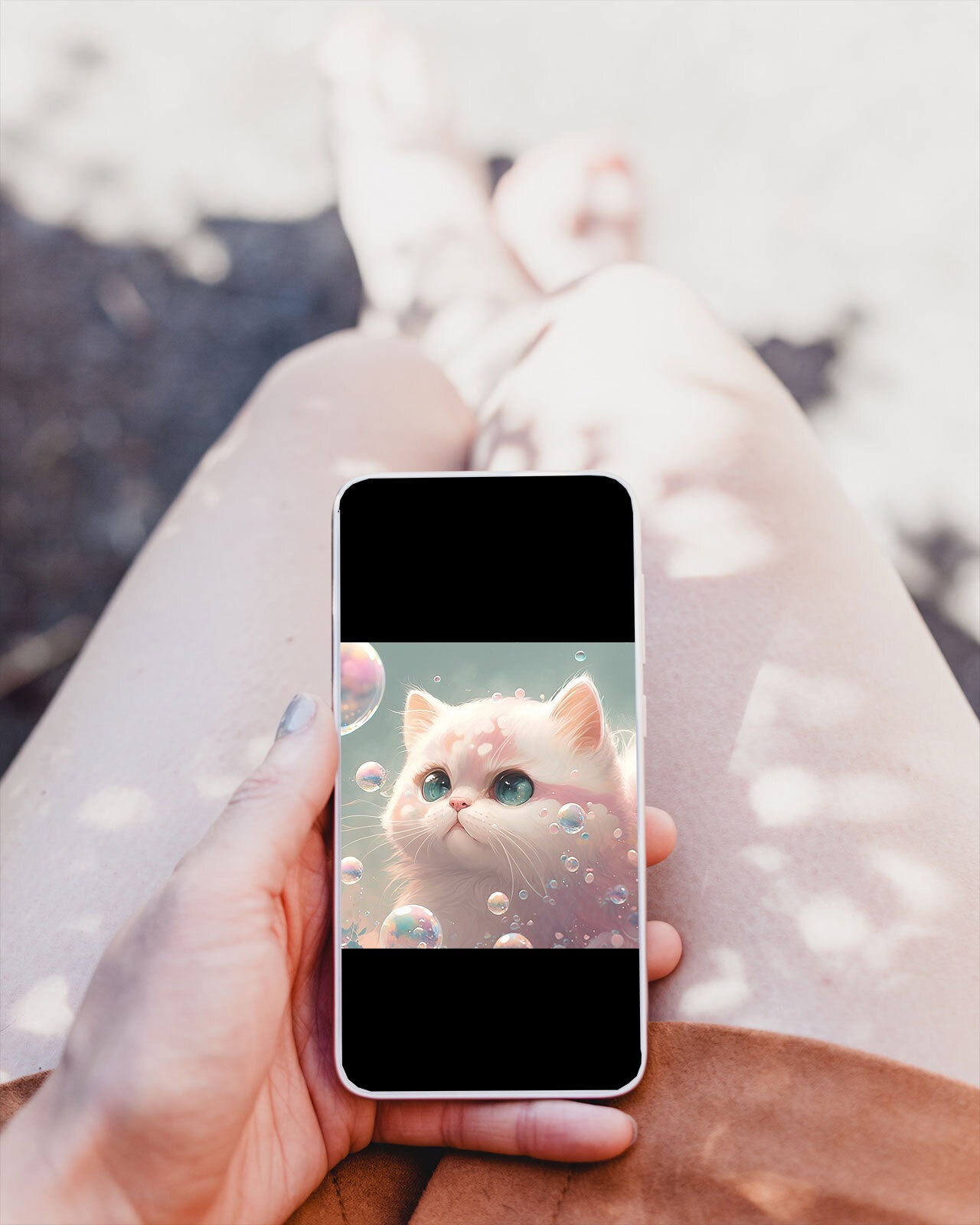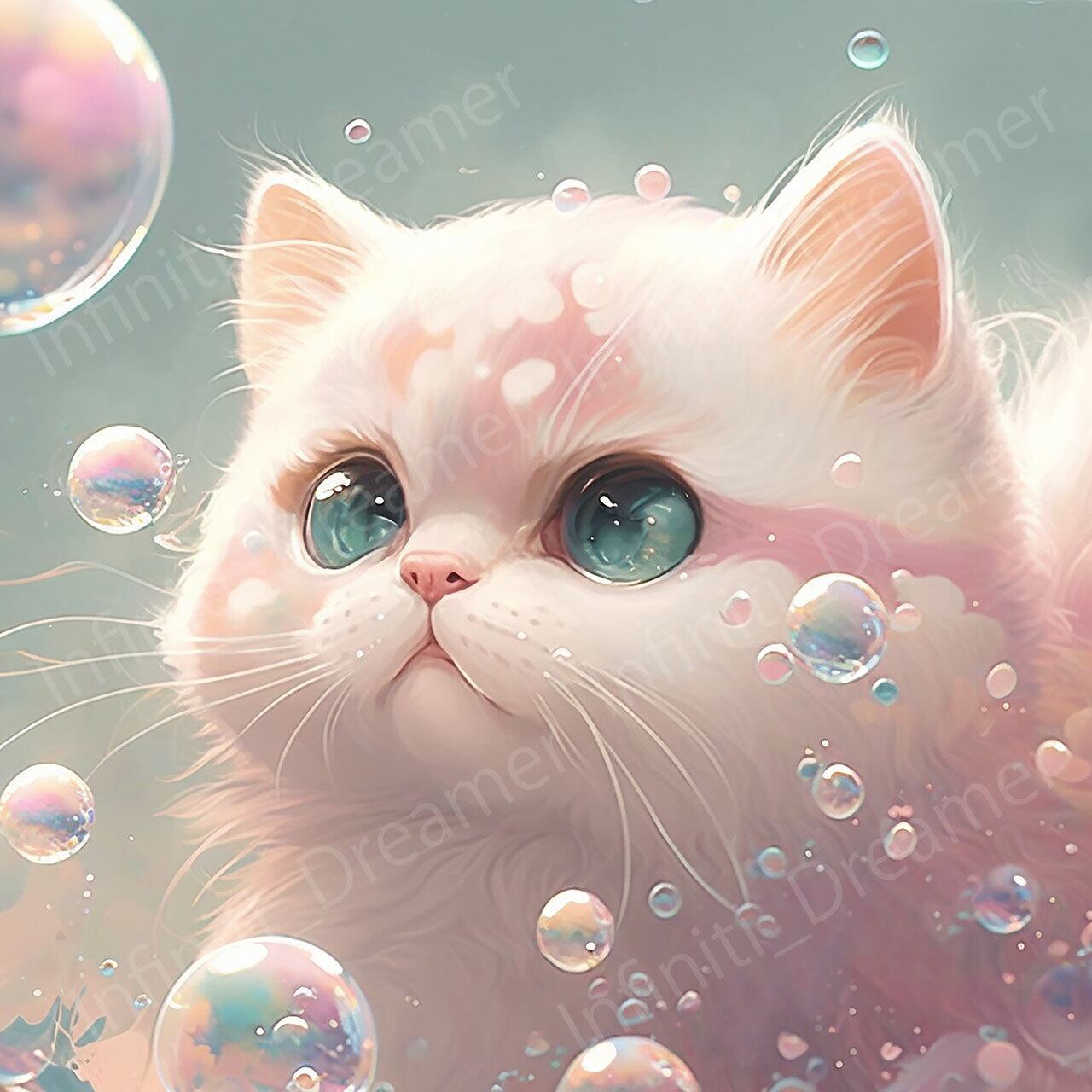 シャボン玉と猫 のパステルカラー イラスト アート(デジタルコンテンツ ダウンロード販売)
