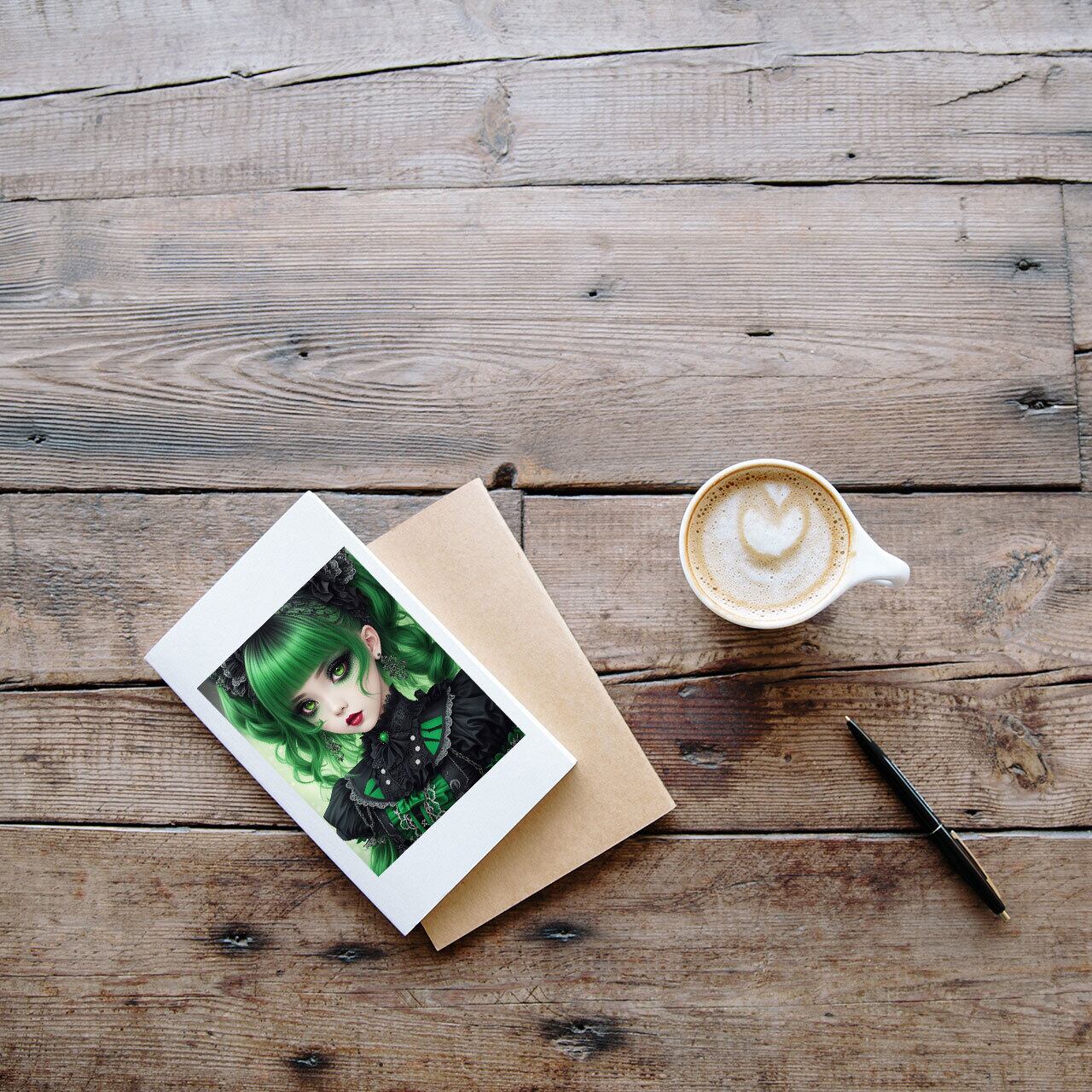グリーン系の 女の子 漫画 イラスト アート(デジタルコンテンツ ダウンロード販売)です♪