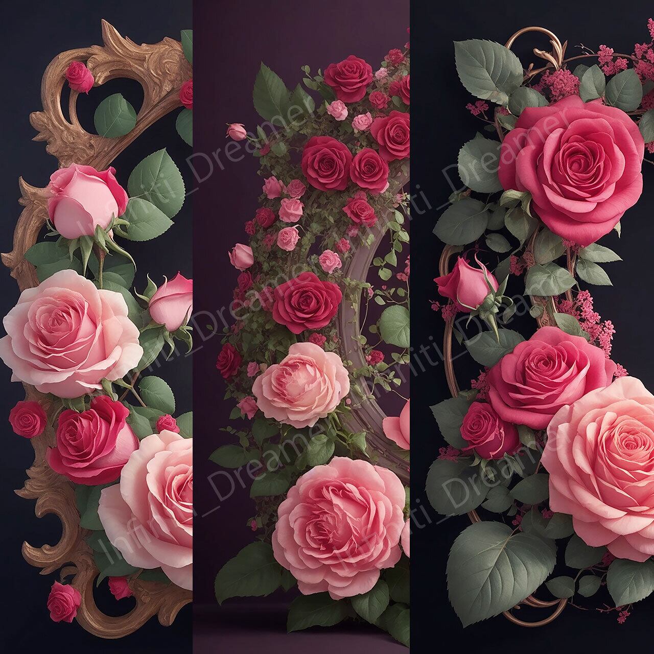 3枚 ピンク 薔薇 のフレーム アート (デジタルコンテンツ ダウンロード販売)です♪