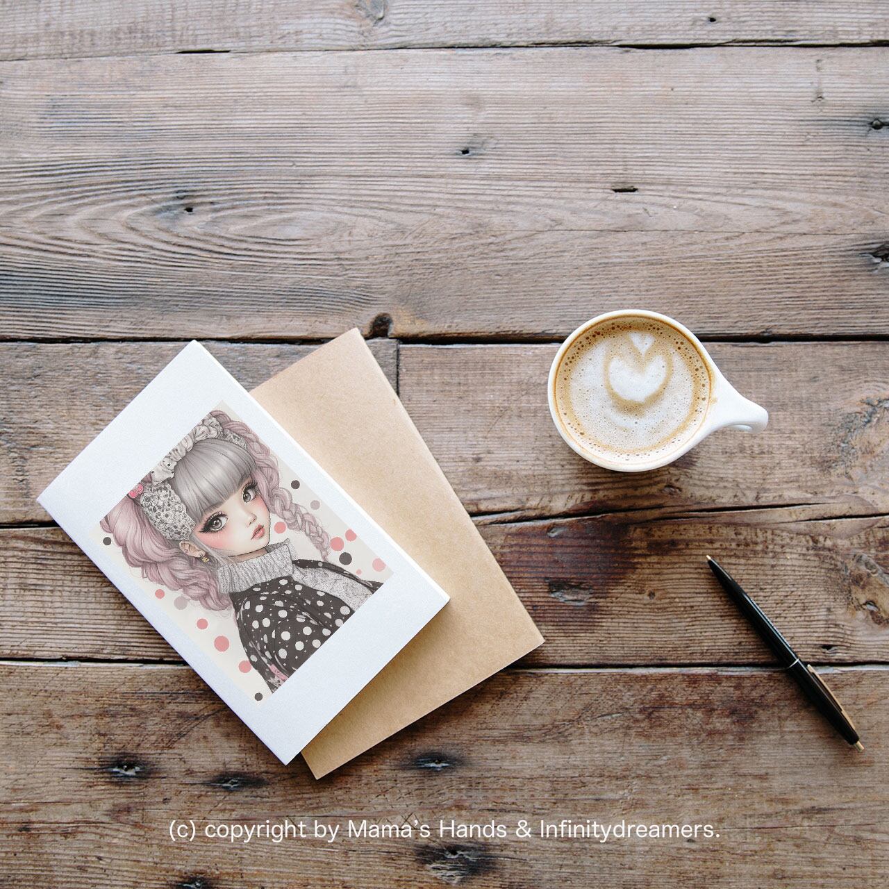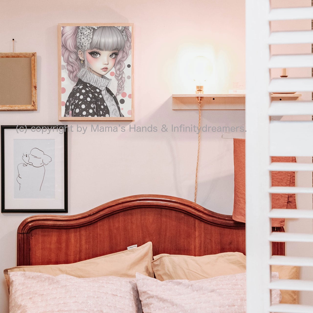 ⭐️可愛い水玉と女の子 のイラスト アート(デジタルコンテンツ ダウンロード販売)です♪