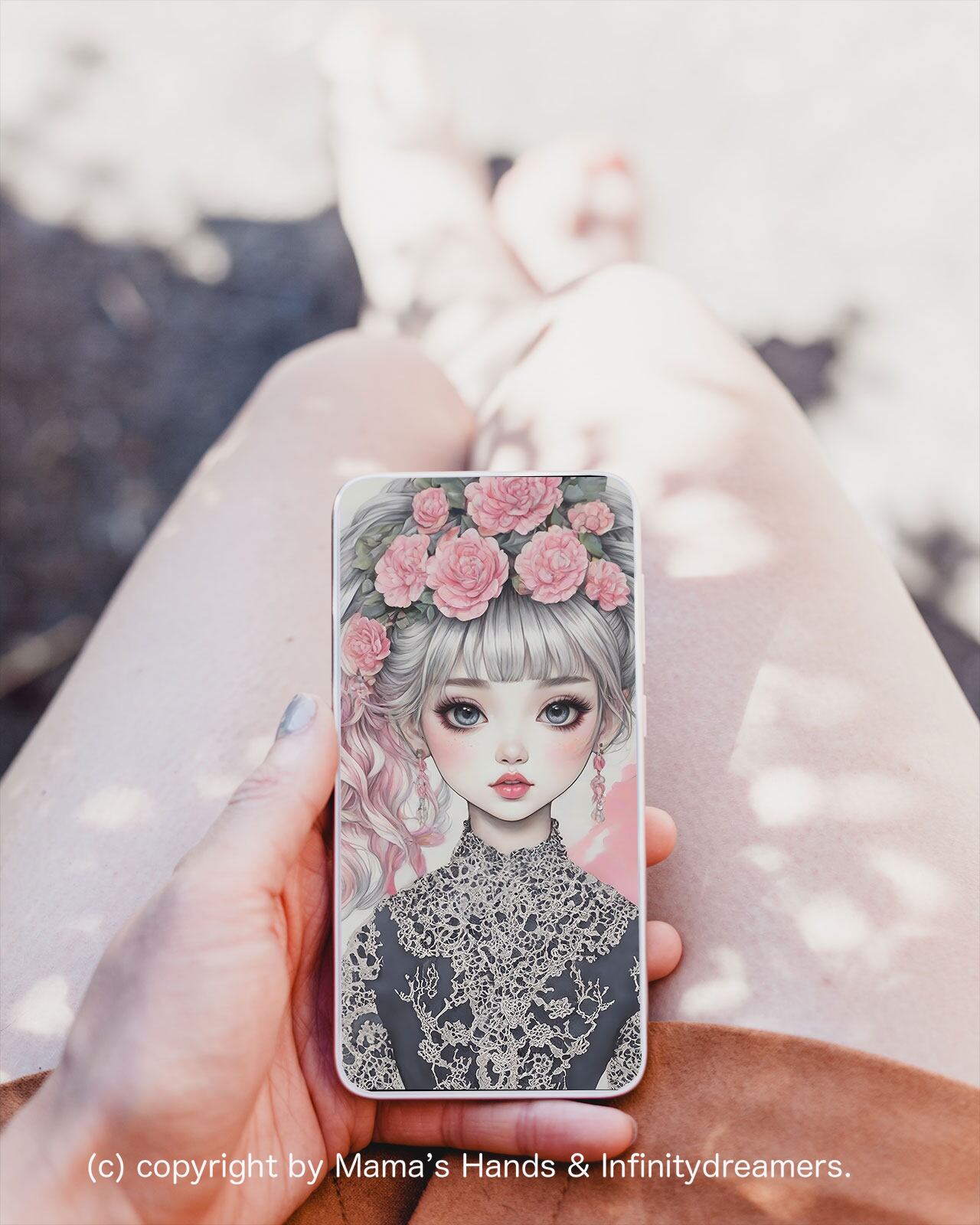 ピンクの花と女性のイラストアート(デジタルコンテンツ ダウンロード販売)