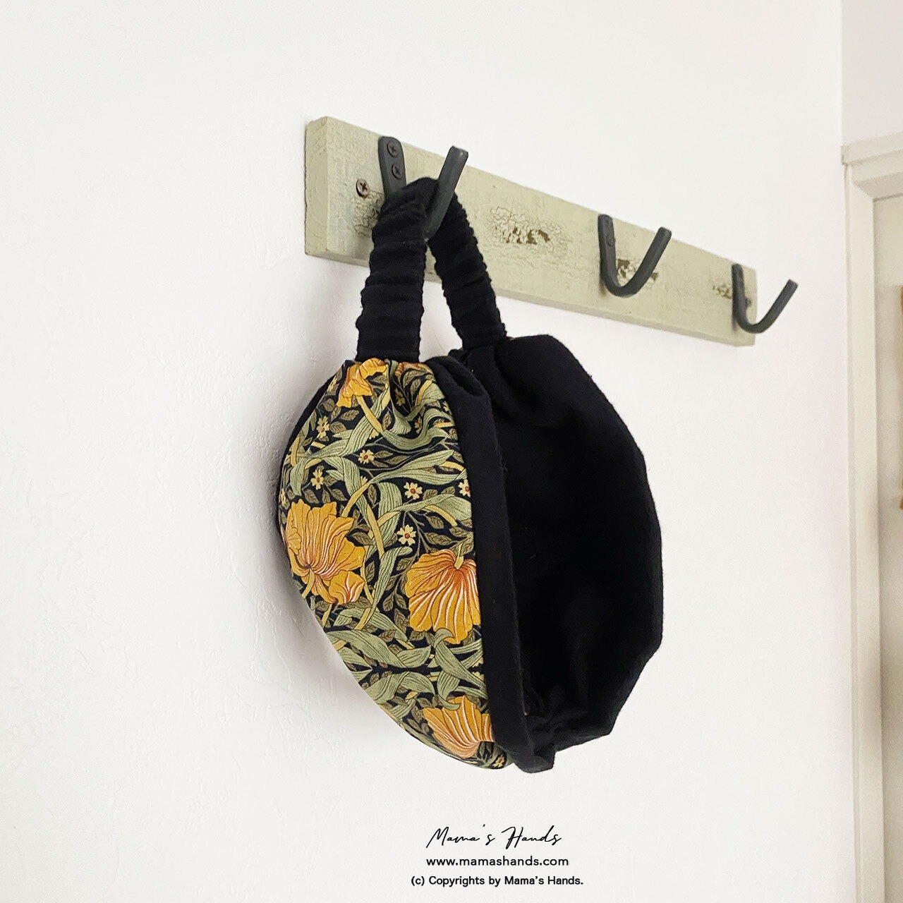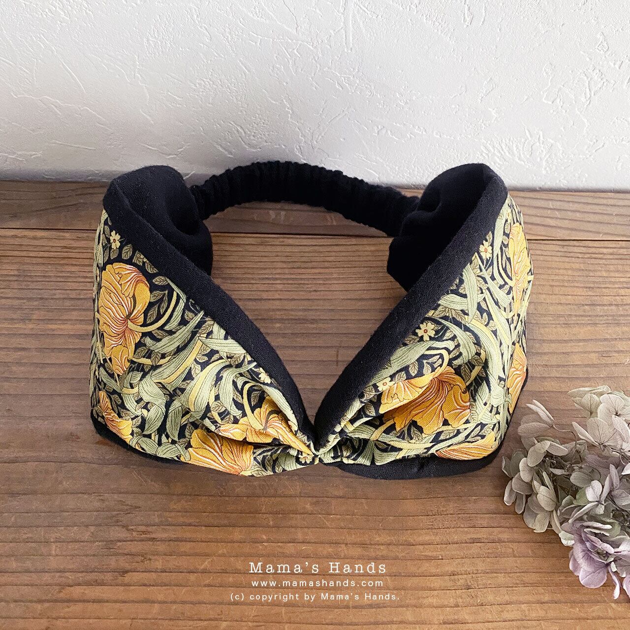 おしゃれな ウィリアムモリス ピンパーネル x 黒 花柄 ターバン ヘアバンド