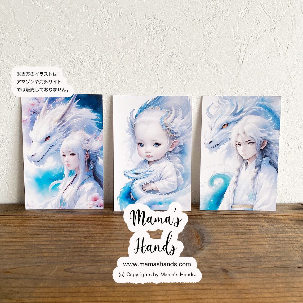 ⭐️新 美しい 白龍と桜 瀬織津姫 龍 龍神 スピリチュアル 開運 イラスト アート 3枚 ハガキ ポストカード セット です。