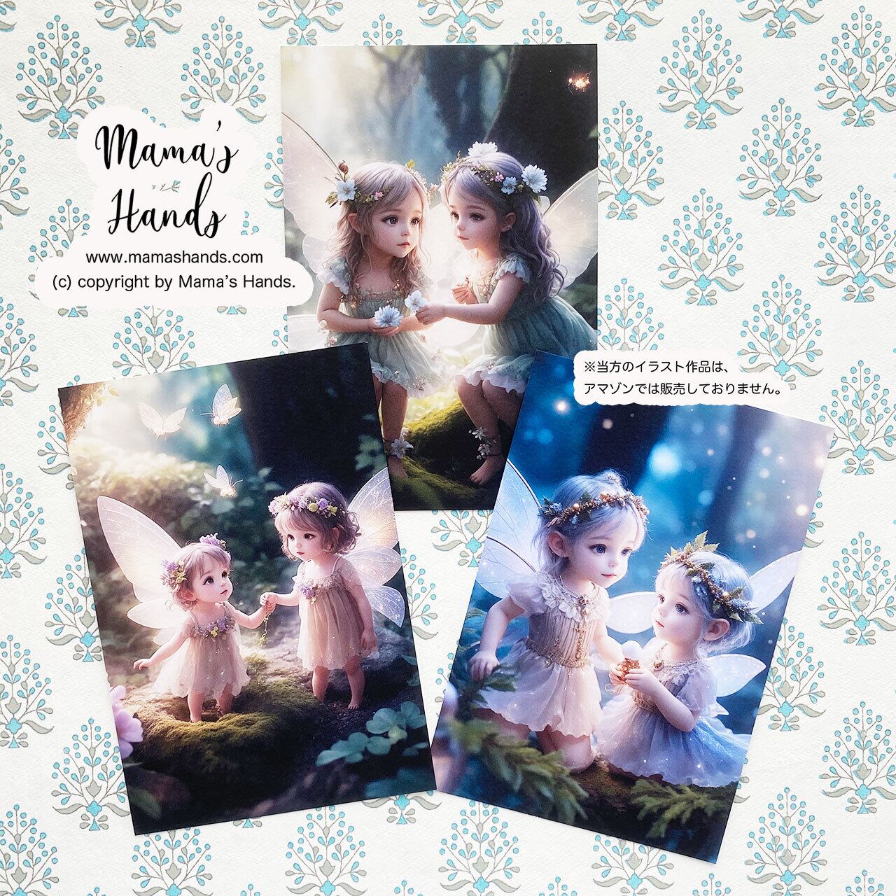 ⭐️可愛い森の中の幼い妖精たちのアート、ハガキ3枚セットです。