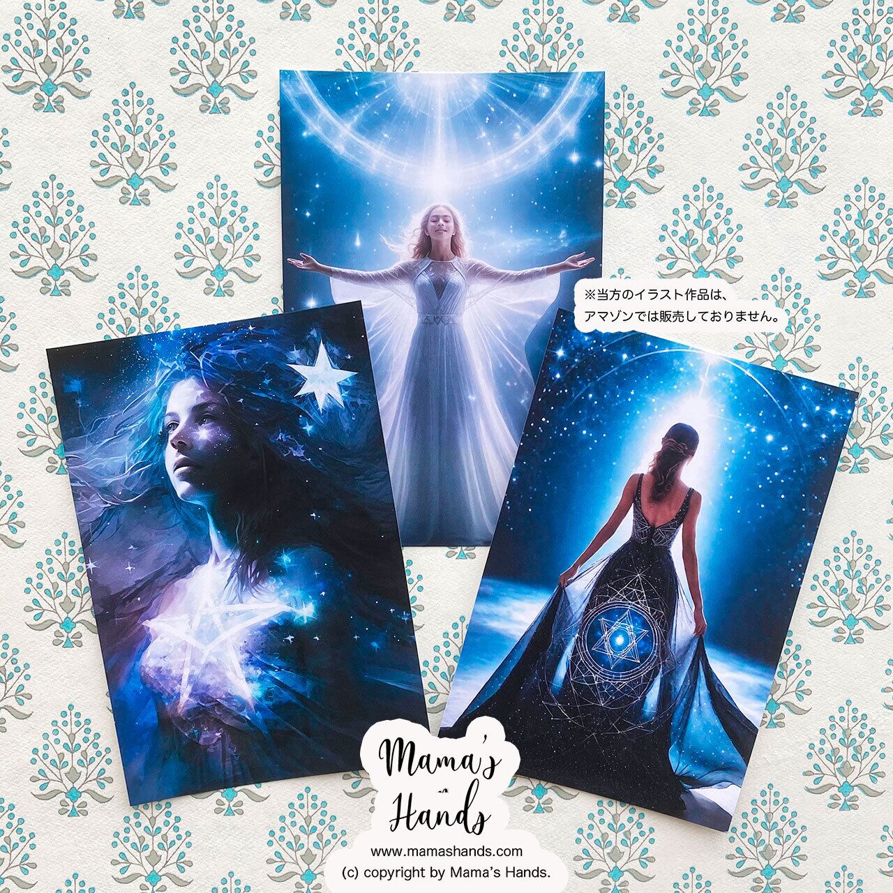 ⭐️宇宙と女性 レムリア スピリチュアル スピリチュアル 開運 アート 3枚ハガキセットです。