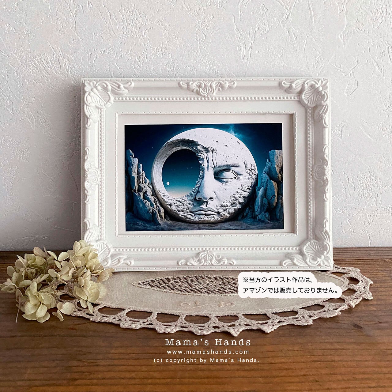 ⭐️神秘的なムーンフェイス 月 宇宙 アンティーク風 絵画 イラスト アート 3枚ハガキセット です。