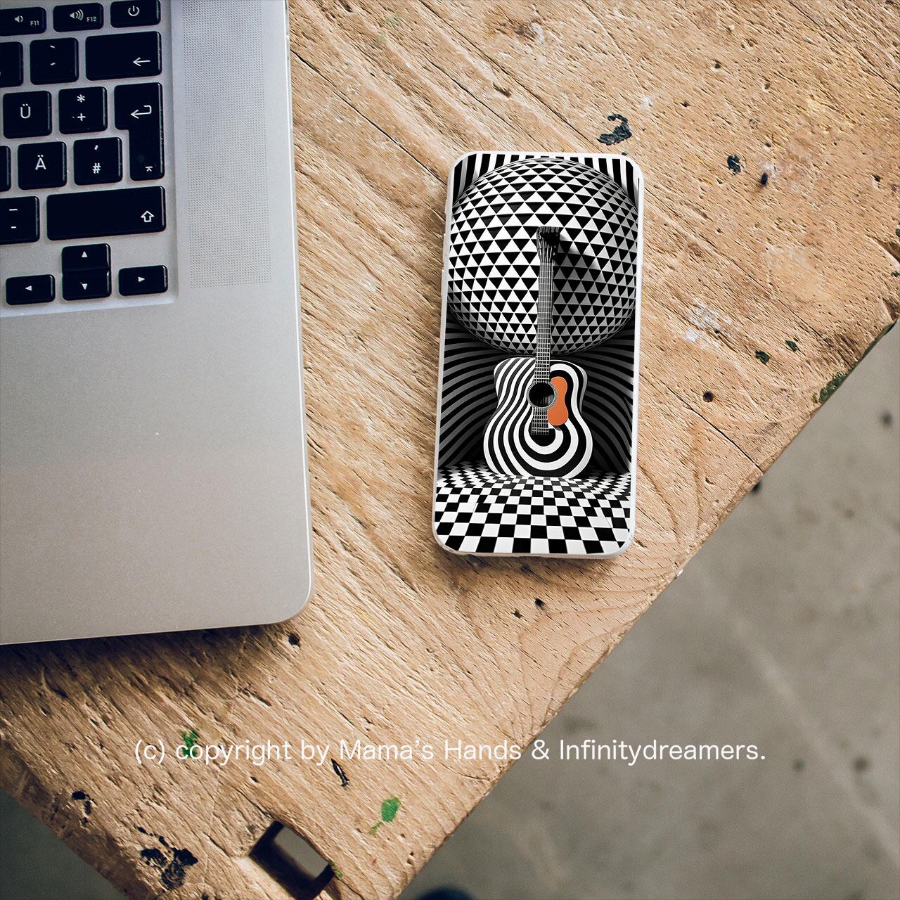 ⭐️モノトーン ギターと幾何学模様の北欧風イラストアート(デジタルコンテンツ ダウンロード販売)です♪