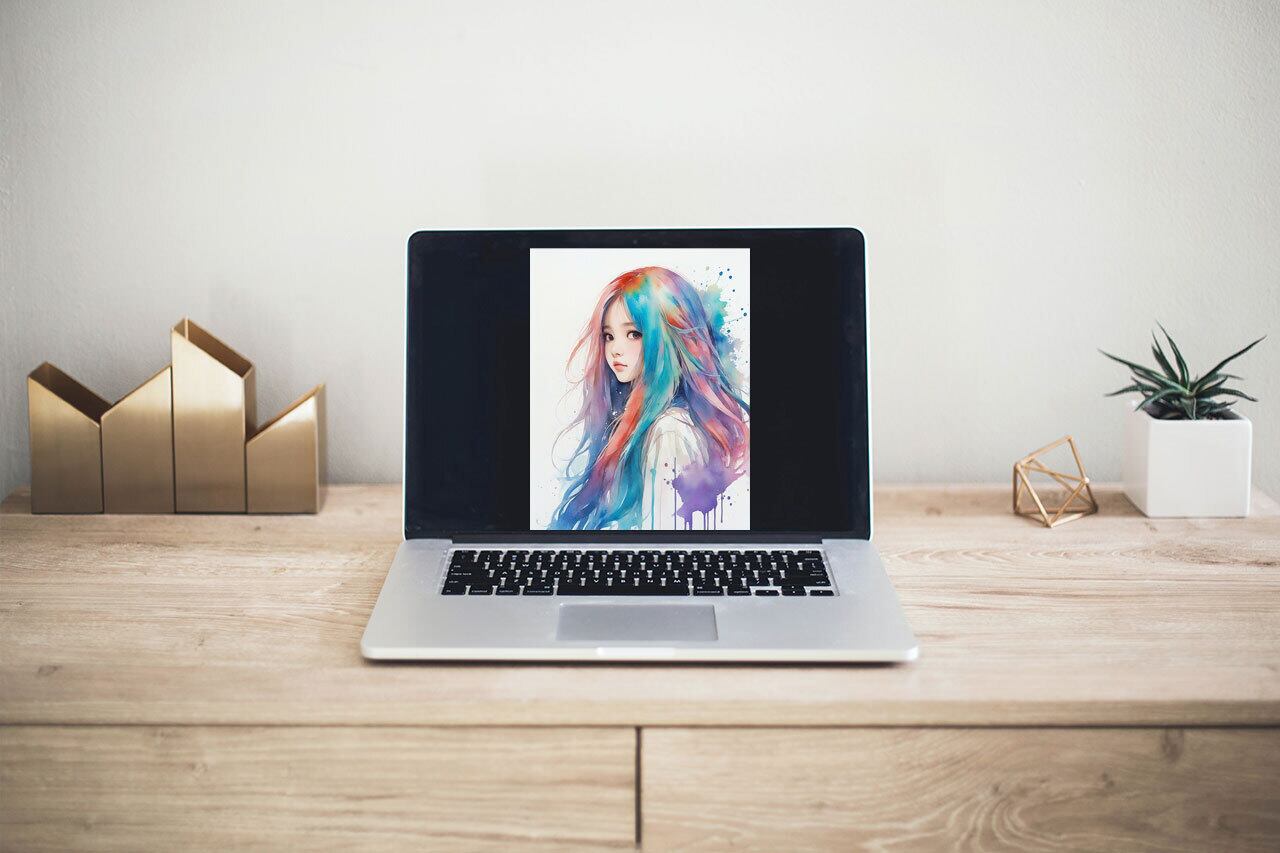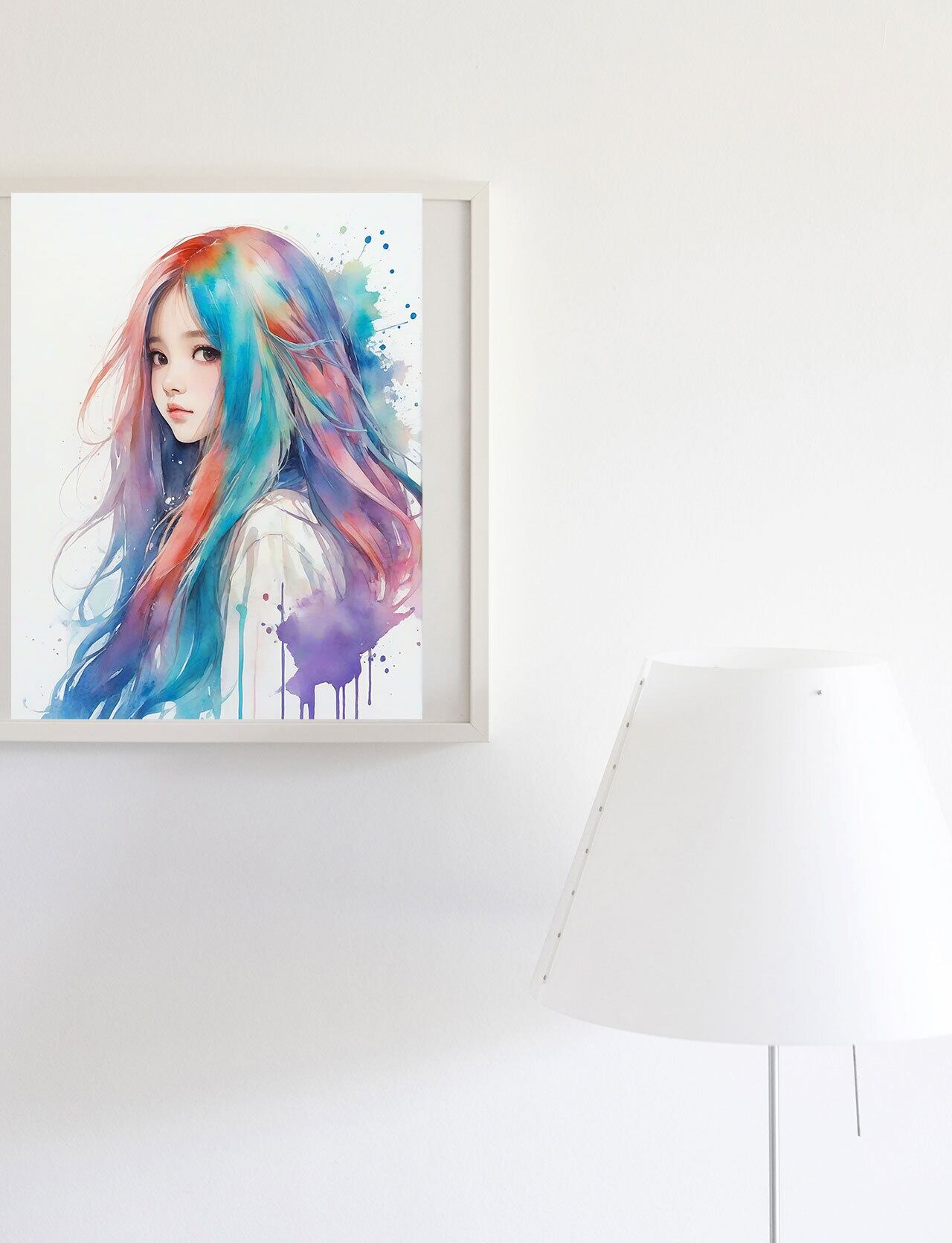 若い女性の虹カラー 水彩画 イラストアート(デジタルコンテンツ ダウンロード販売)
