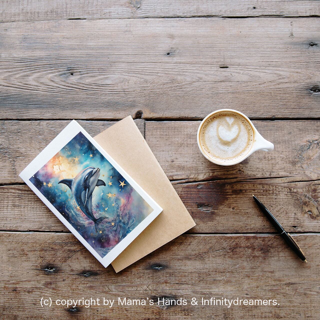 ⭐️イルカ と 宇宙 のファンタジー 水彩画 イラスト アート(デジタルコンテンツ ダウンロード販売)です♪