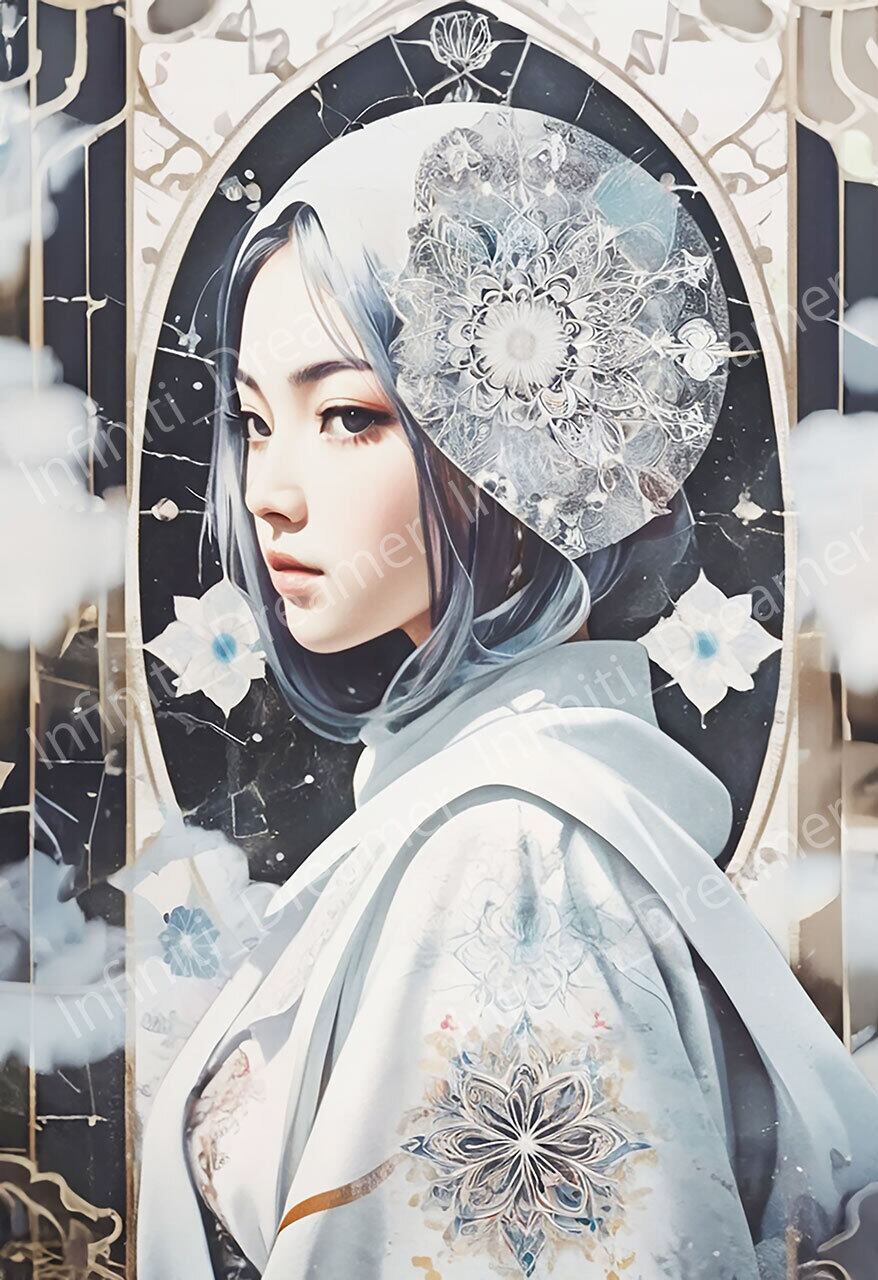 未来風の和服の若い女性 イラストアート SNSアイコン(デジタルコンテンツ ダウンロード販売)