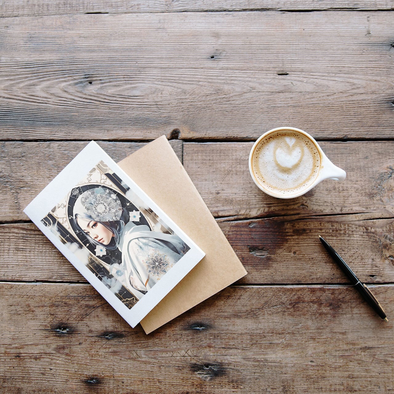 未来風の和服の若い女性 イラストアート SNSアイコン(デジタルコンテンツ ダウンロード販売)です♪