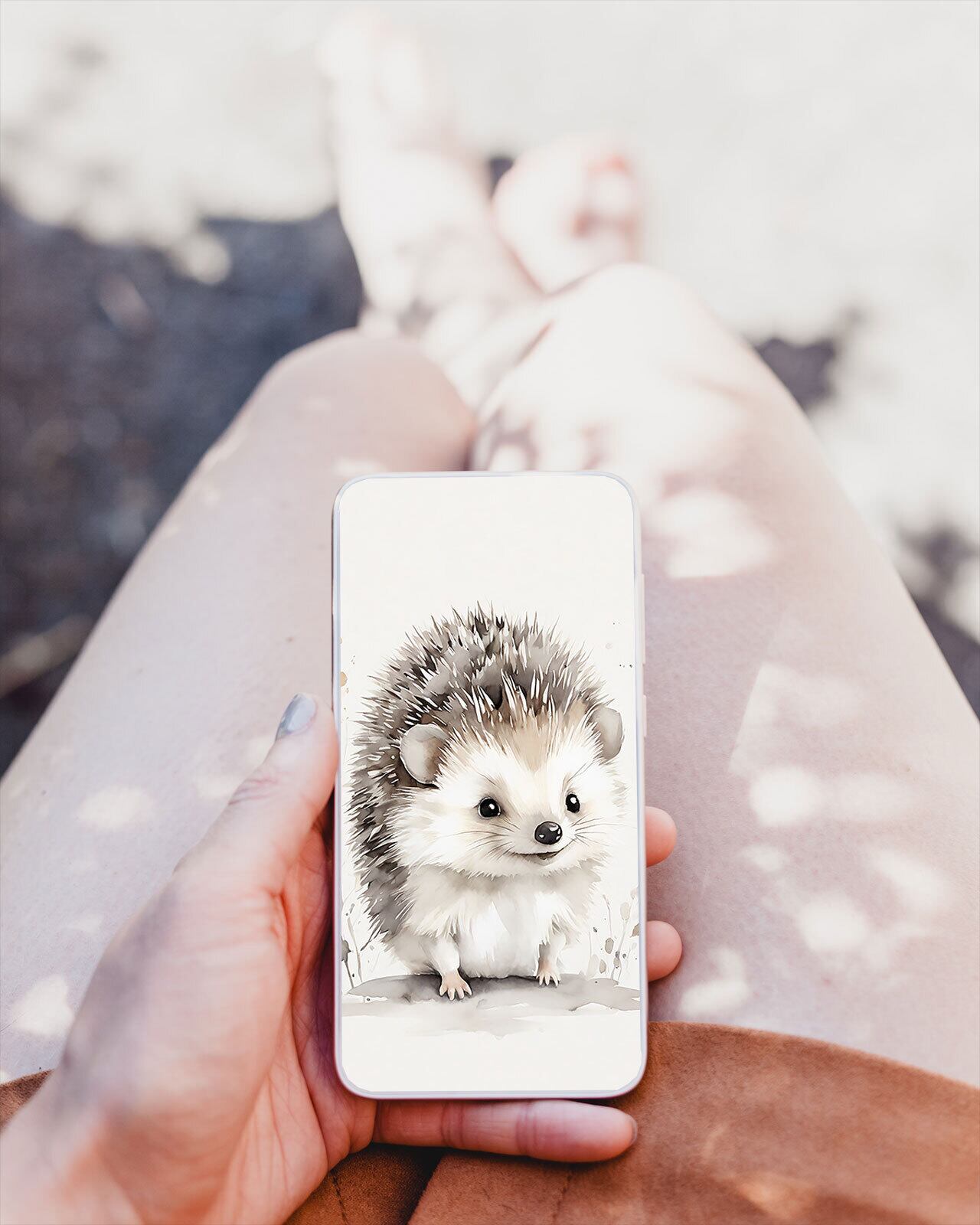 ハリネズミと植物 の可愛い アニマル 動物 水彩画 イラスト アート(デジタルコンテンツ ダウンロード販売)