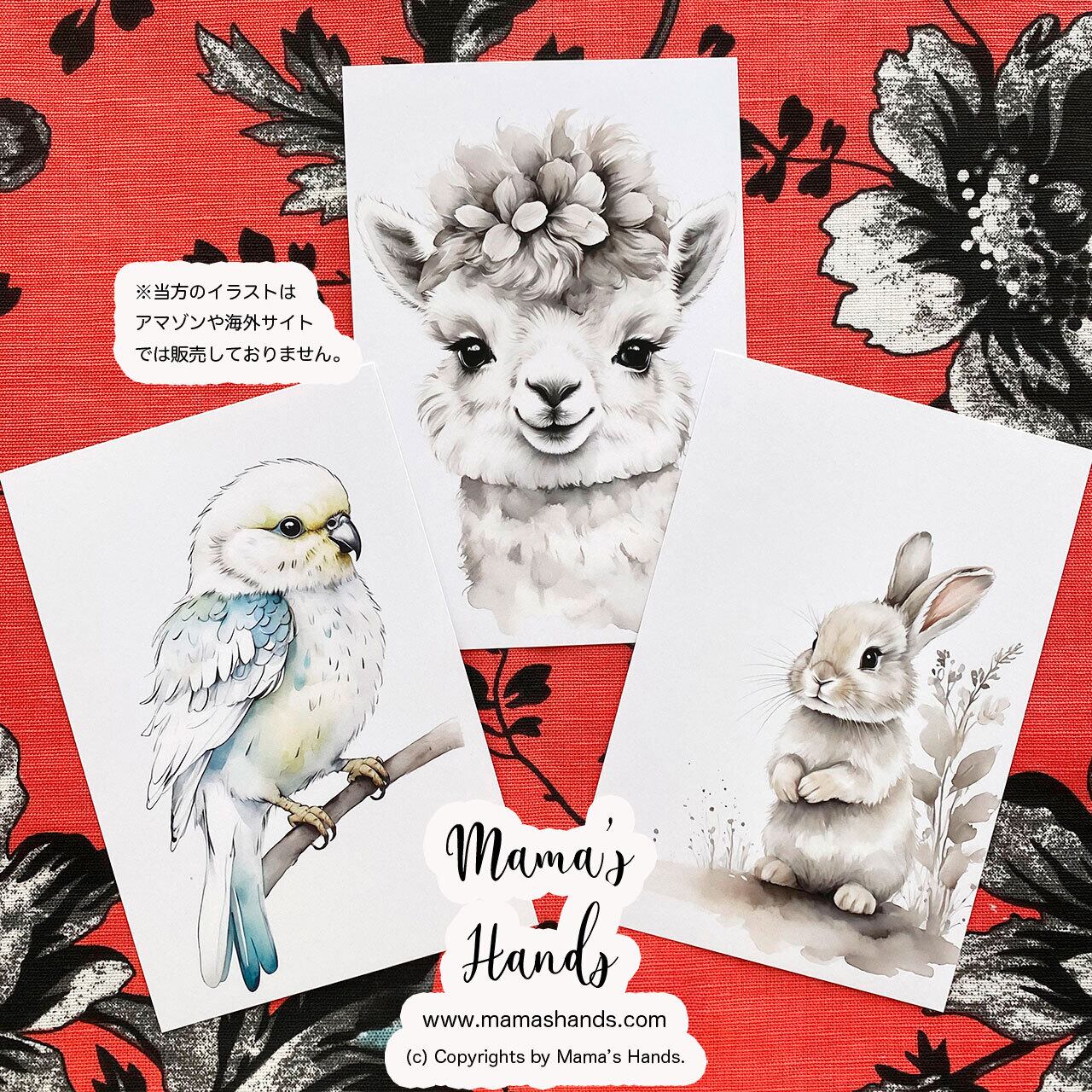 小鳥 アルパカ うさぎ 水彩画 イラスト アート 3枚 動物 アニマル ハガキ ポストカード セット ♪