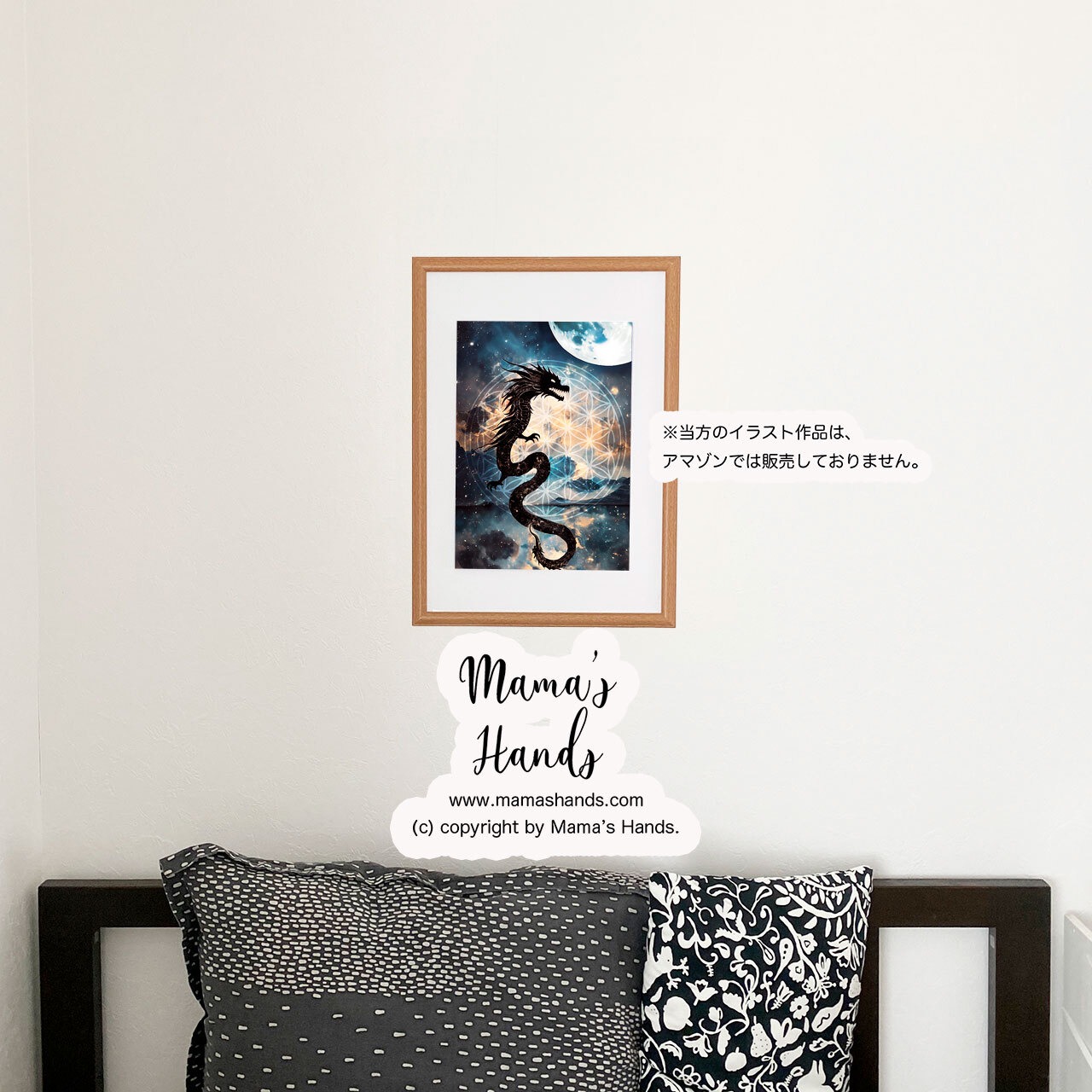 A4 ポスター フラワーオブライフを埋め込んだ 黒龍のお守り 神聖幾何学 スピリチュアル 開運 イラスト アート