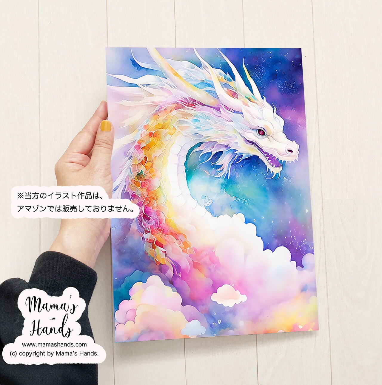 ⭐️《天の雲に棲む 虹龍 》☘️A4 ポスター パステル 龍神 龍 日本神話 開運 イラスト アートです♪