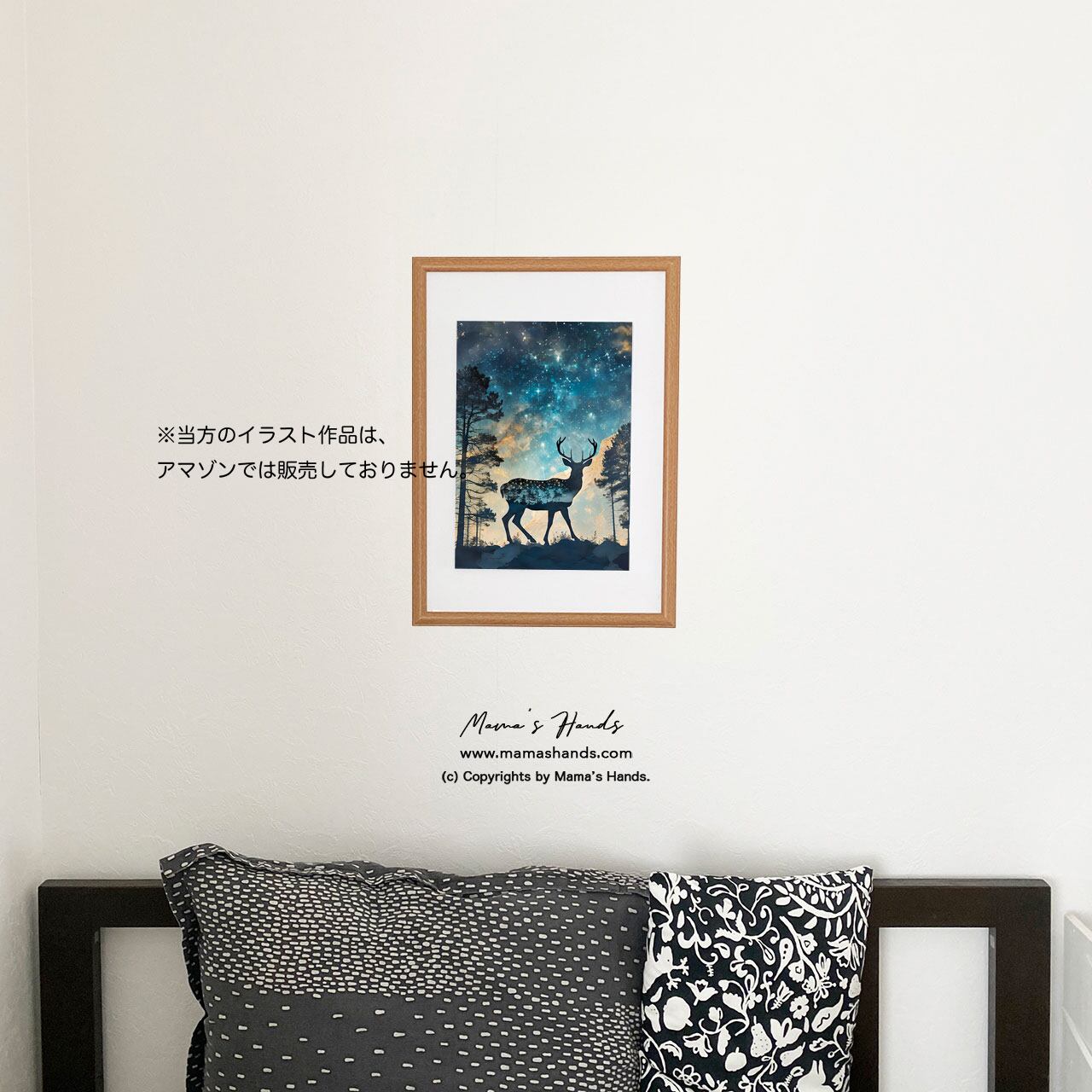 ⭐️A4 ポスター アウトドア 自然と融合した鹿と夜空の神秘的な 宇宙 イラスト アートです♪