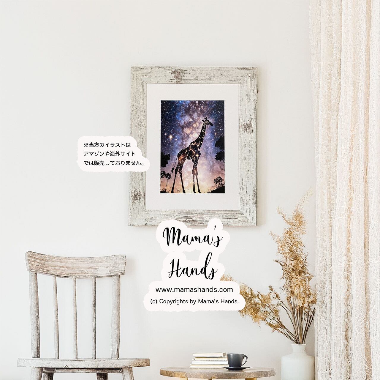 ⭐️キリンと夜空のアートです♪輪郭は強調しすぎず、やわらかさや奥行き、神秘的な雰囲気を重視した画風となります。