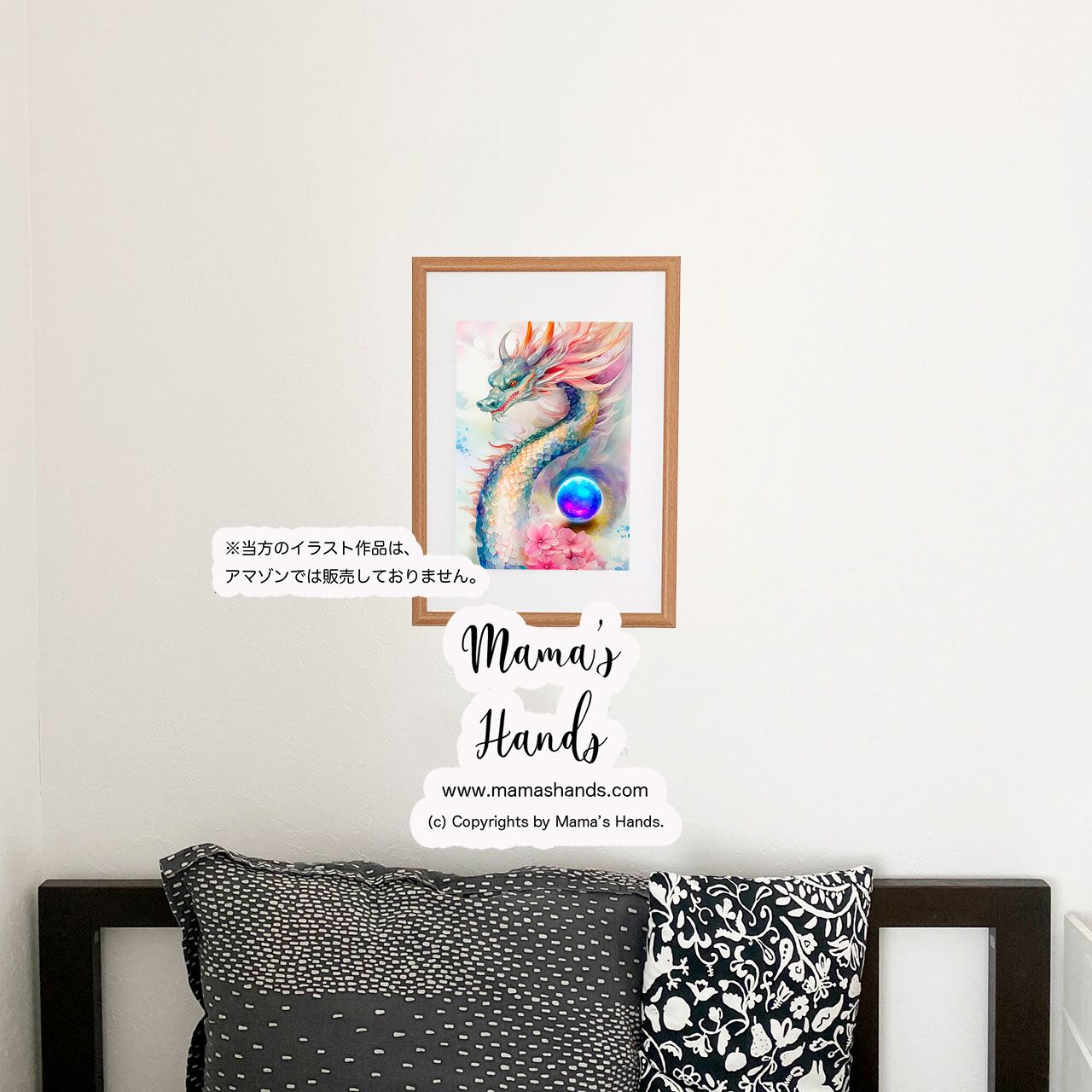 A4 ポスター 虹龍と宝玉 水晶 スピリチュアル 開運 龍 龍神 水彩画 イラスト アート