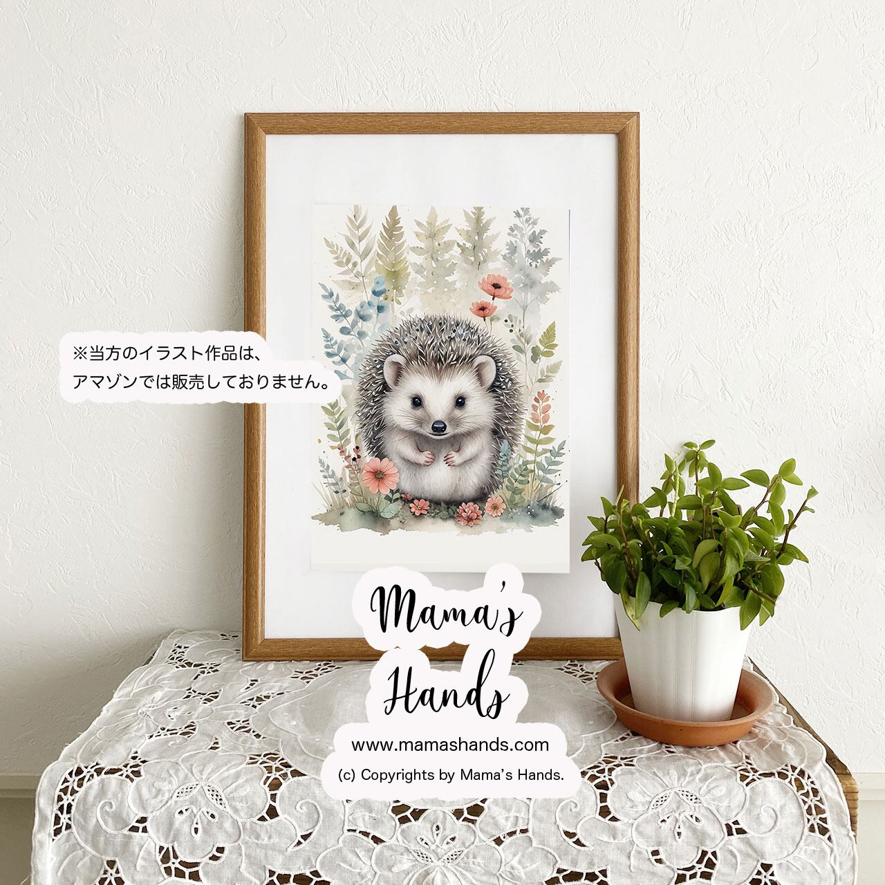 ⭐️A4 ポスター 可愛い ハリネズミ ボタニカル フラワー 花 水彩画 イラスト アートです♪