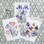⭐️チューリップ あやめ パンジー 水彩画 イラスト アート 3枚 ハガキ ポストカード セットです。